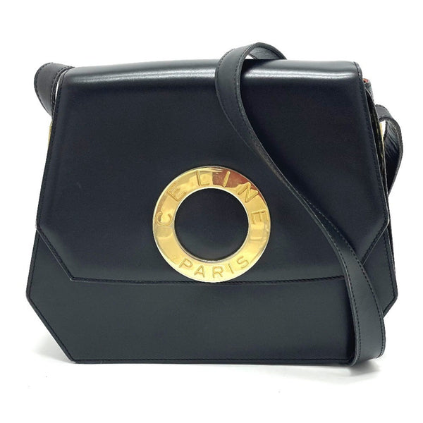 CELINE Logo Accordion Shoulder Bag in Leather, Black