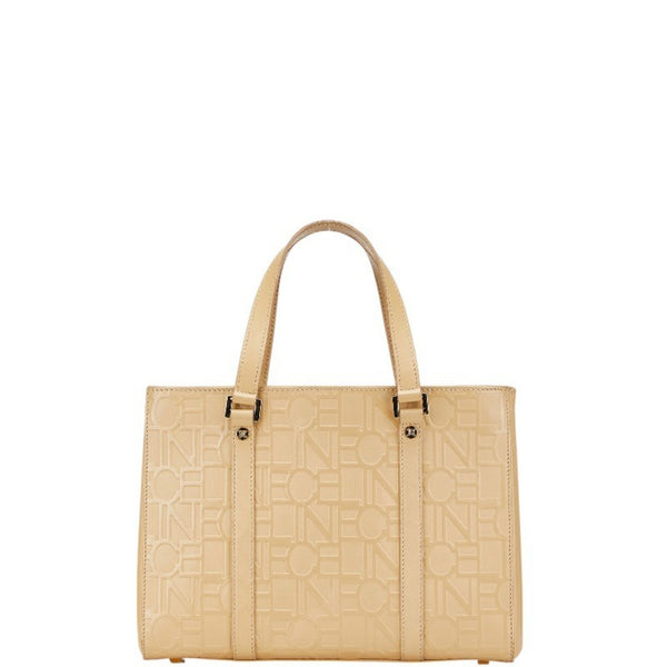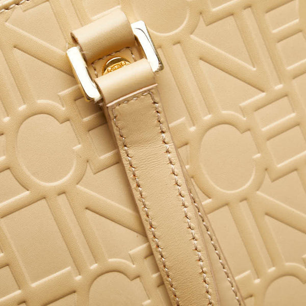 CELINE Logo Embossed Handbag Beige Leather Women\'s