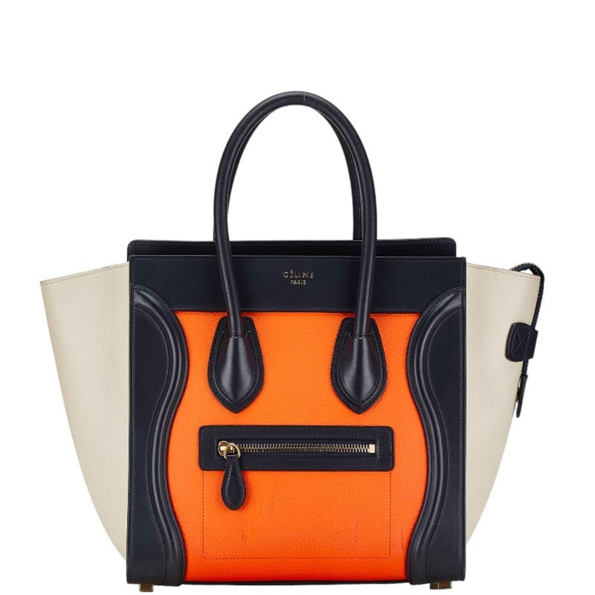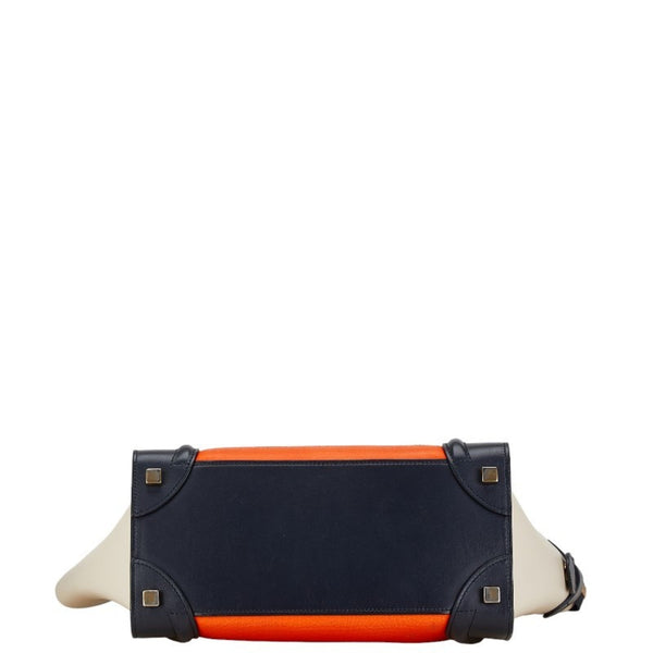 Celine Luggage Nano Shopper Handbag Navy Orange Beige Leather Women\'s CELINE
