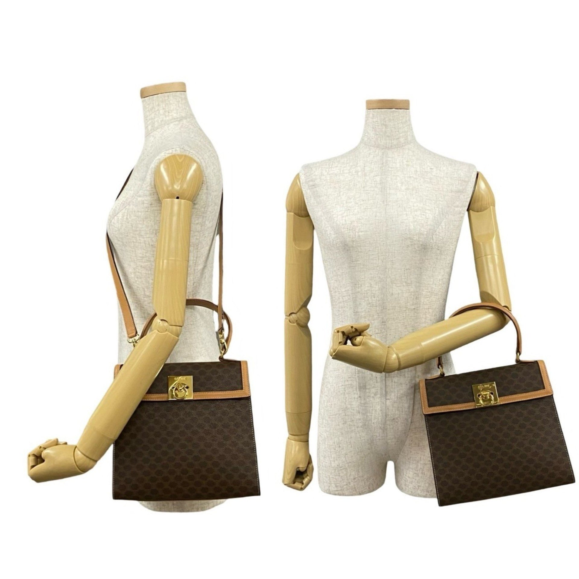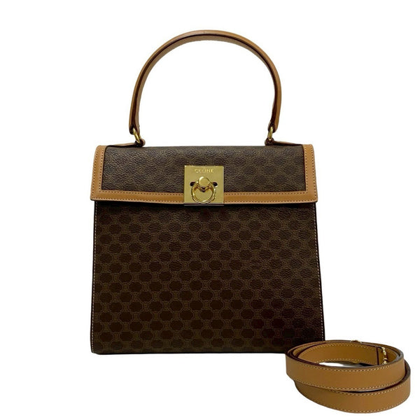 CELINE Macadam Blason Pattern Logo Ring Hardware Leather 2-Way Handbag/Shoulder Bag Brown 51012