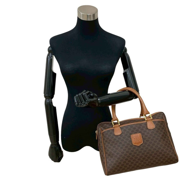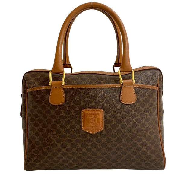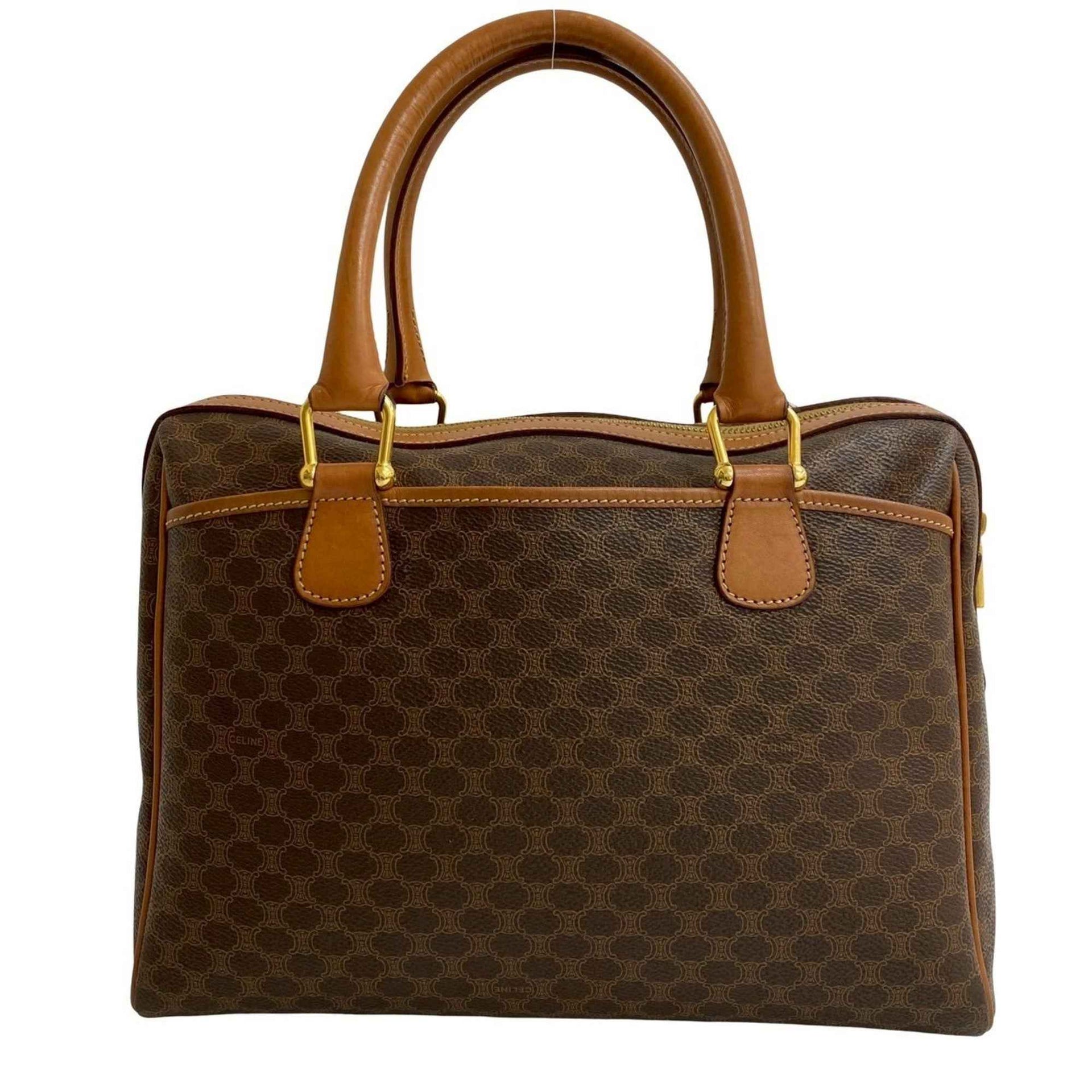 CELINE Macadam Blason Triomphe Leather Handbag/Mini Boston Bag Brown 427-5