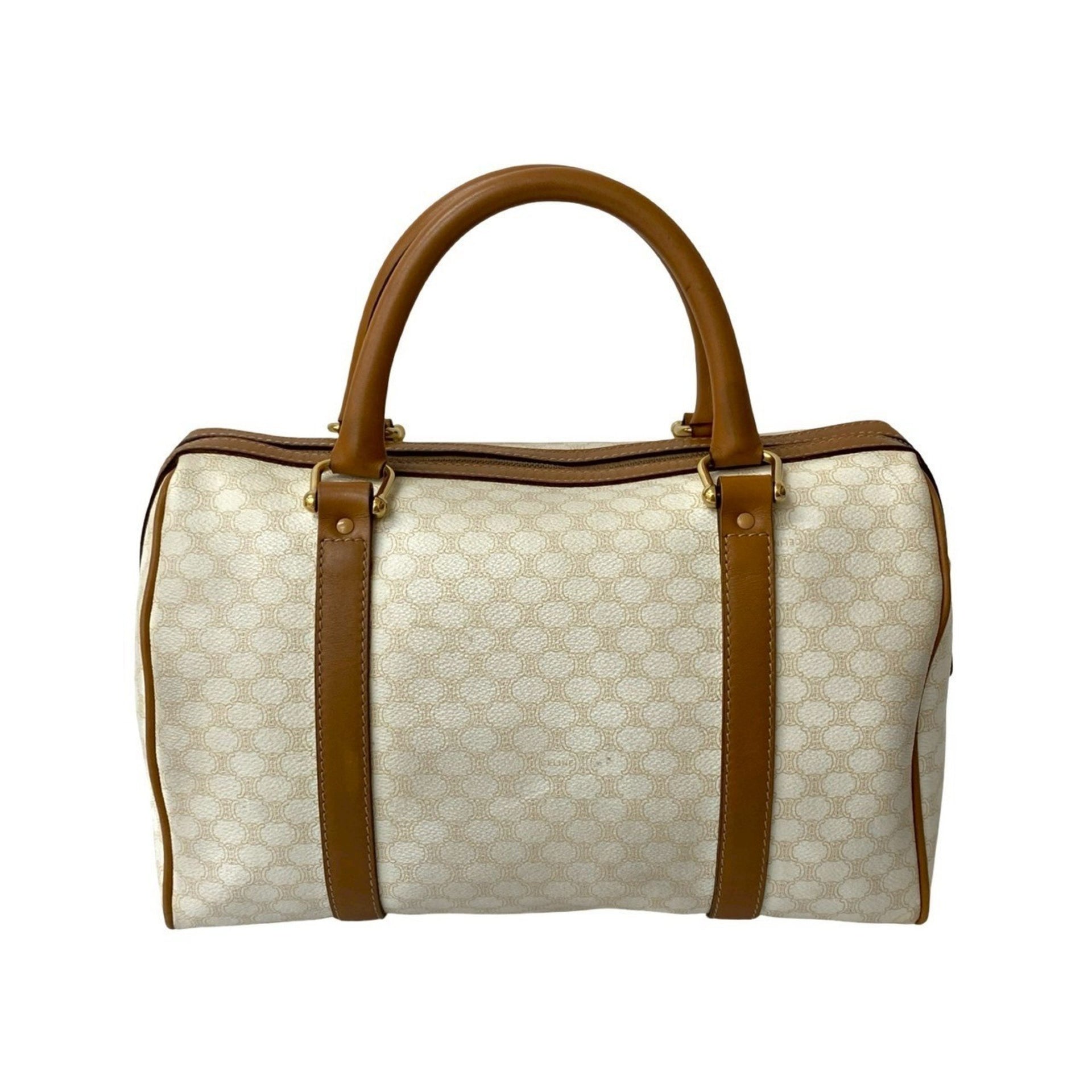 CELINE Macadam Blason Triomphe Leather Handbag/Mini Boston Bag, White, 19249
