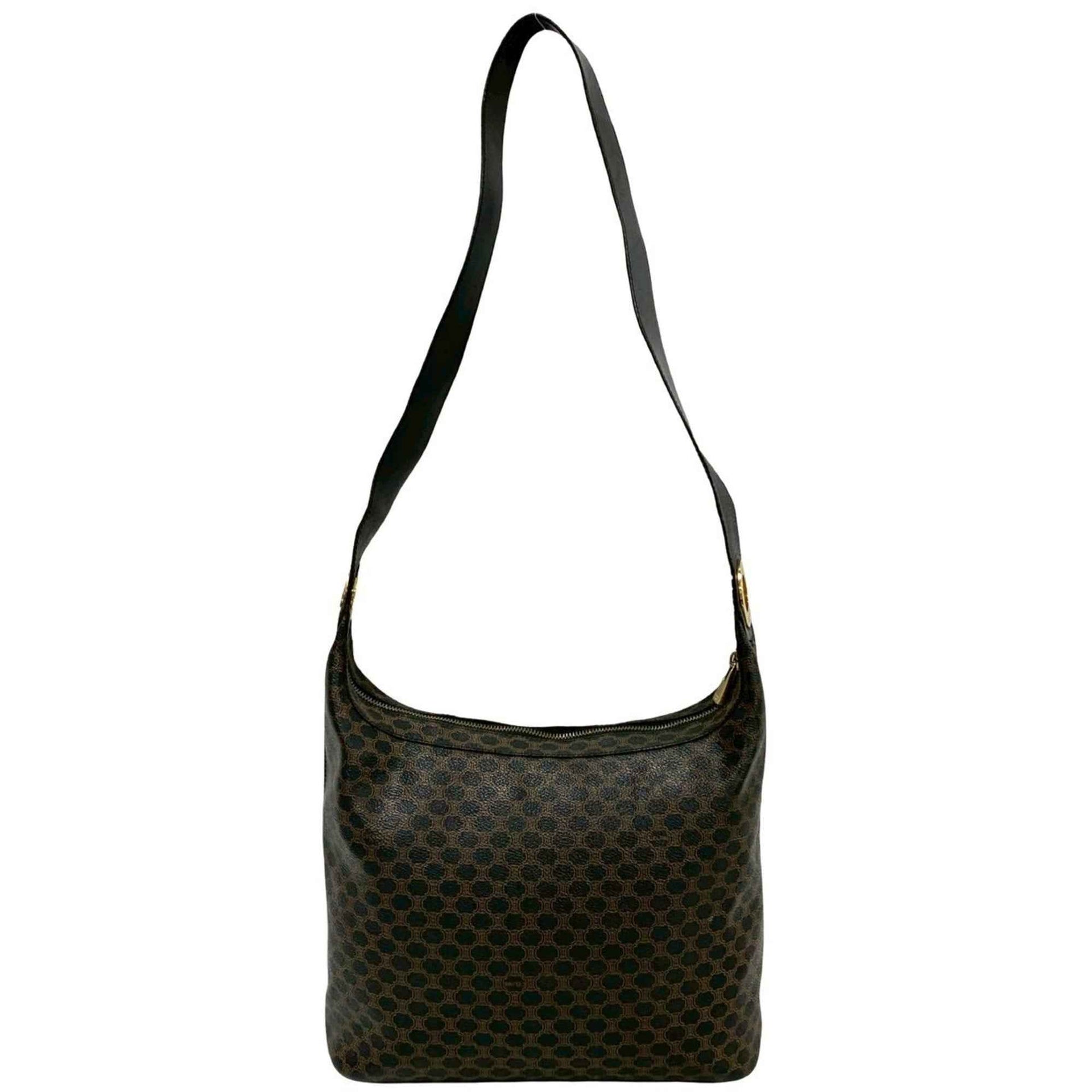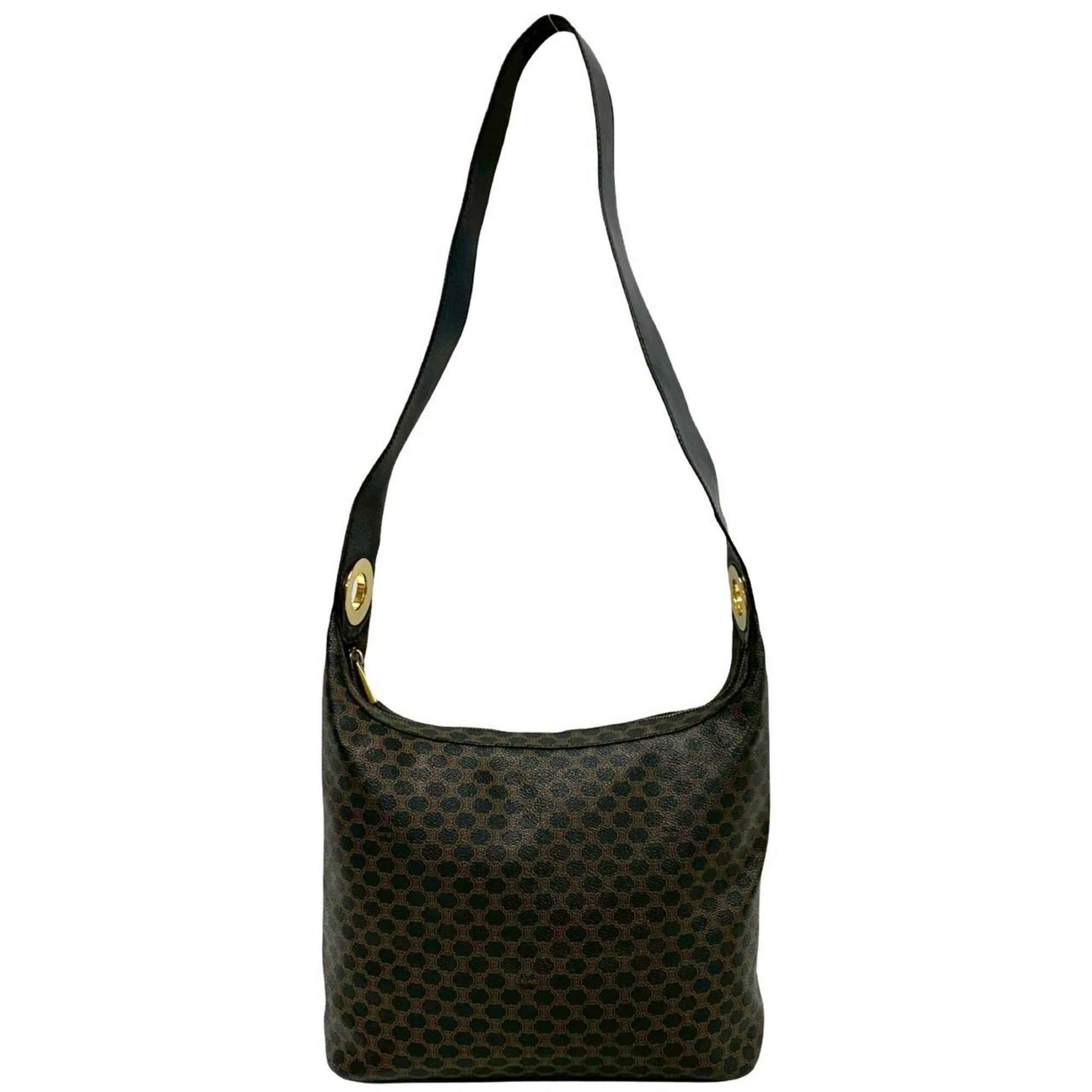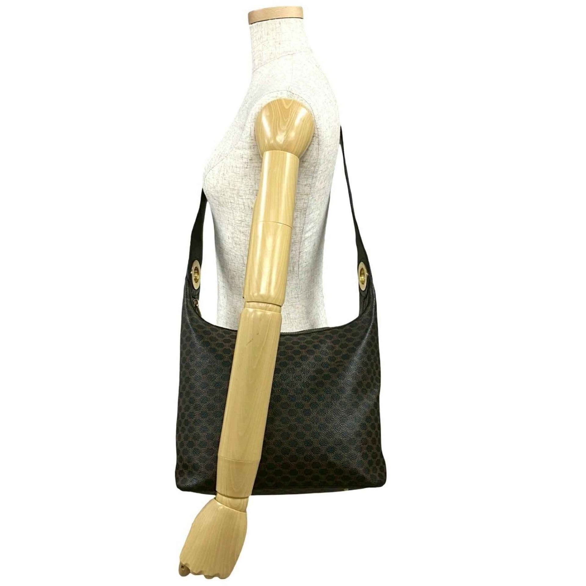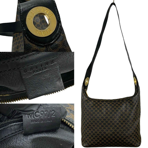 CELINE Macadam Blason Triomphe Pattern Circle Logo Hardware Leather Shoulder Bag Black k95-7