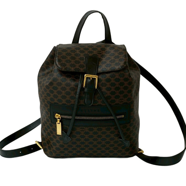 CELINE Macadam Blason Triomphe Print Leather Drawstring Backpack/Daypack, Black, 19931