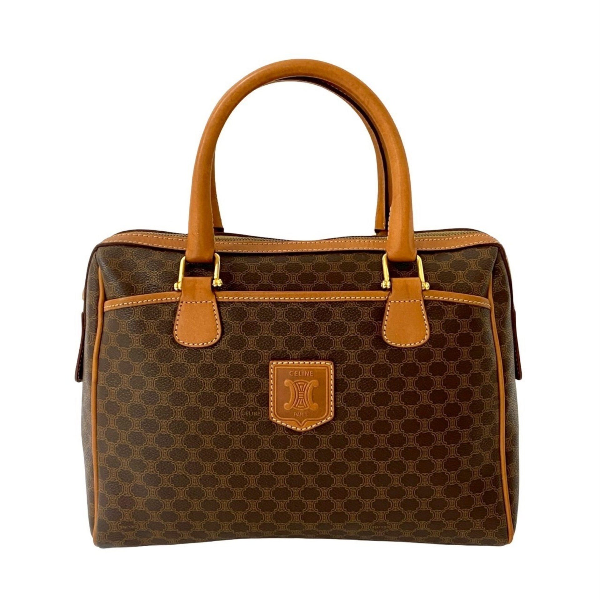 CELINE Macadam Blason with Triomphe Logo and Genuine Leather Handbag/Boston Bag, Brown, 551-2