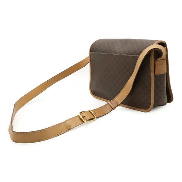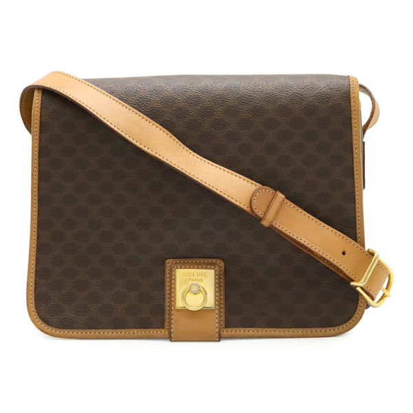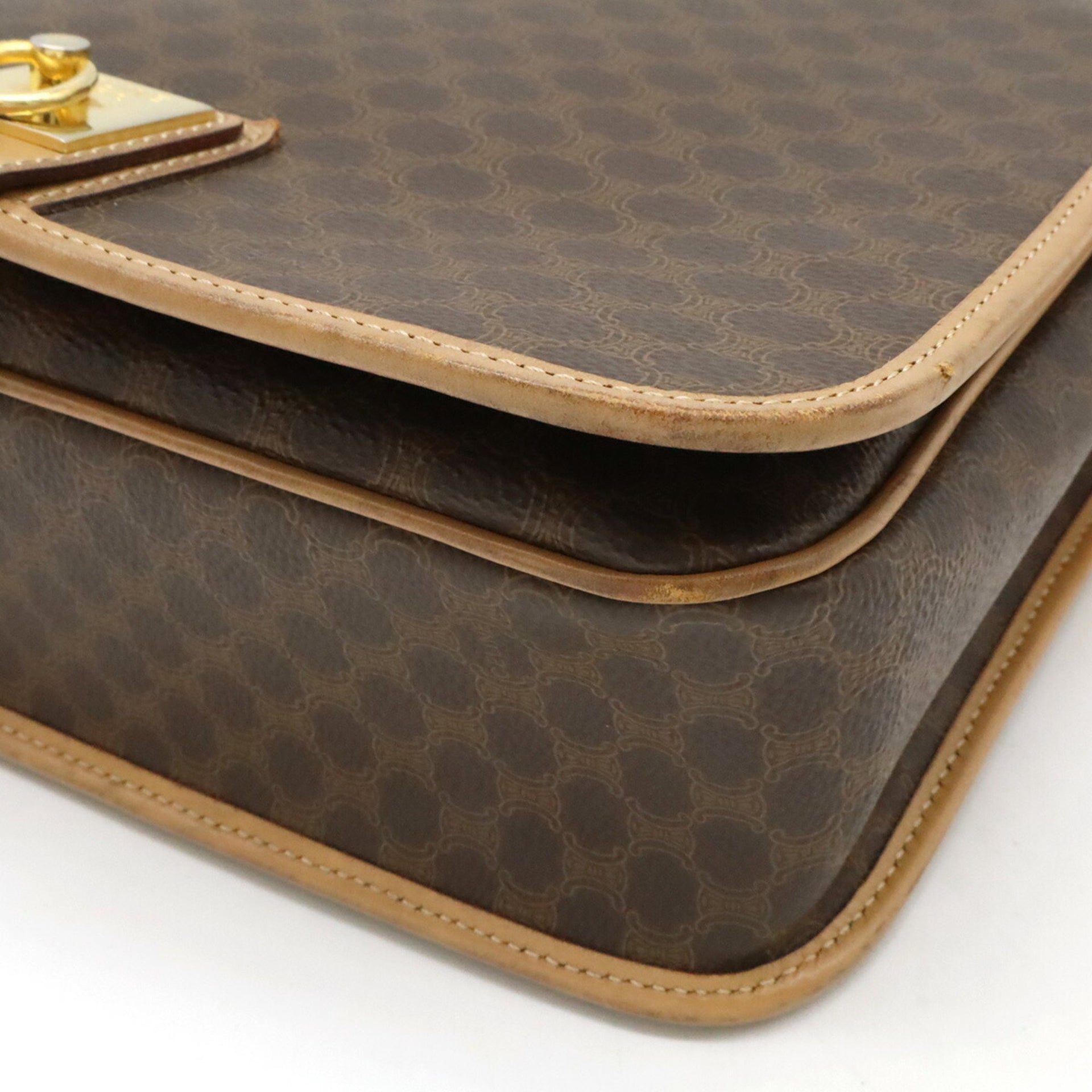 CELINE Macadam shoulder bag, pochette, flap, PVC, leather, dark brown, beige