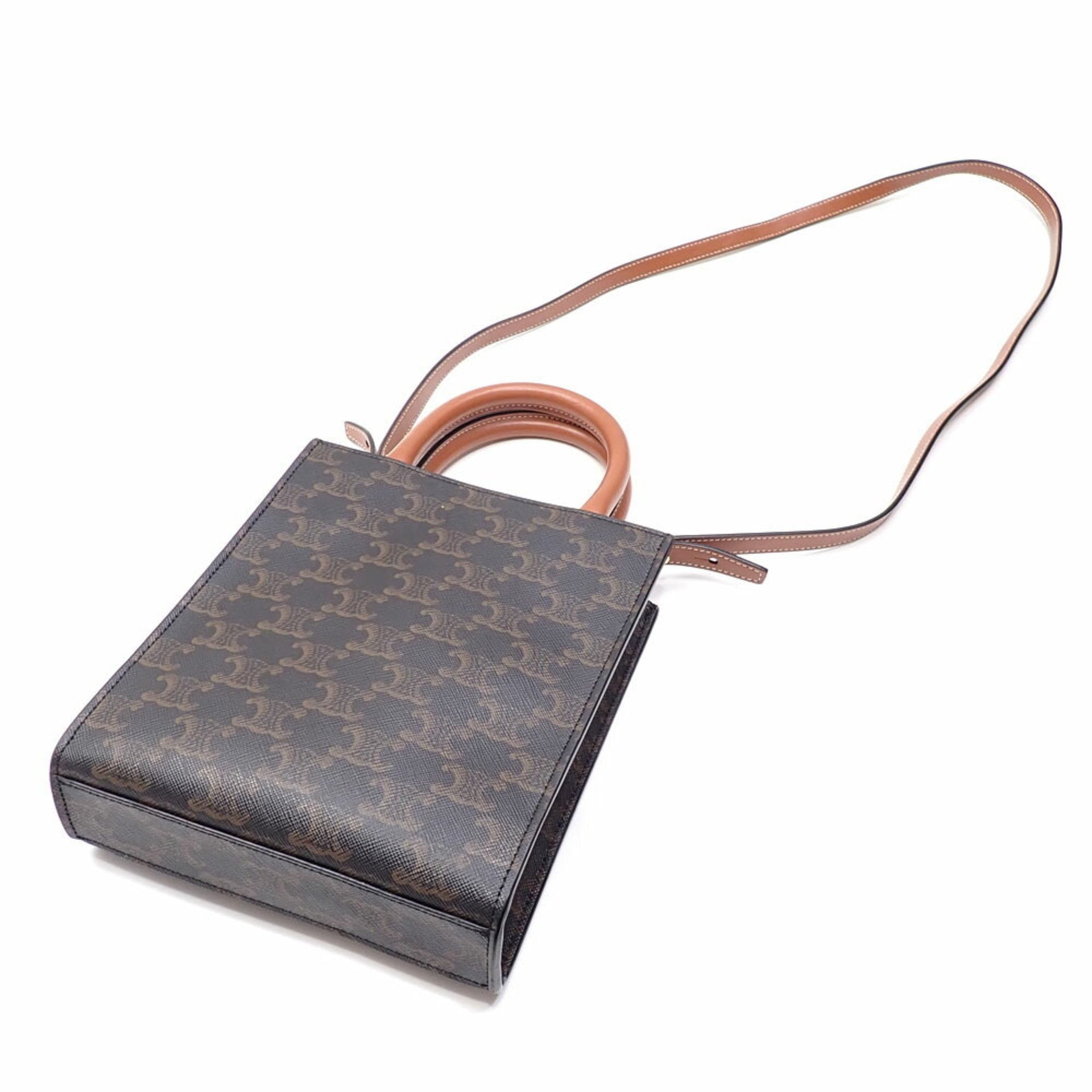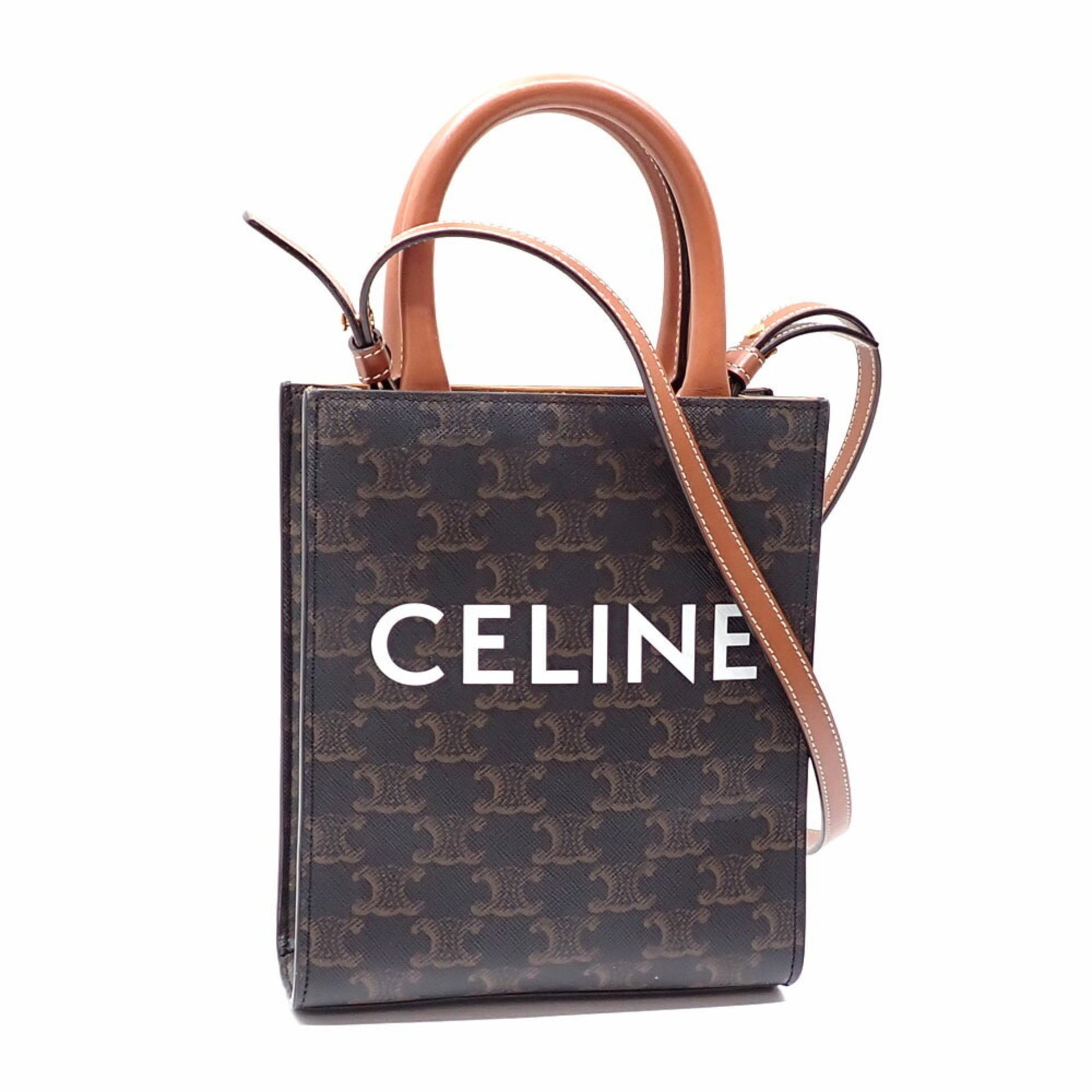 Celine Mini Vertical Handbag, Women\'s, Tan Triomphe Canvas Shoulder Bag, A4044861