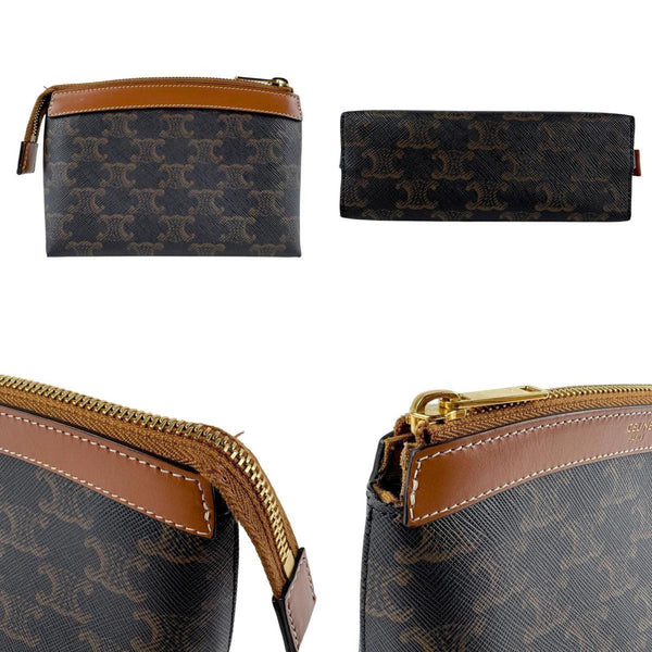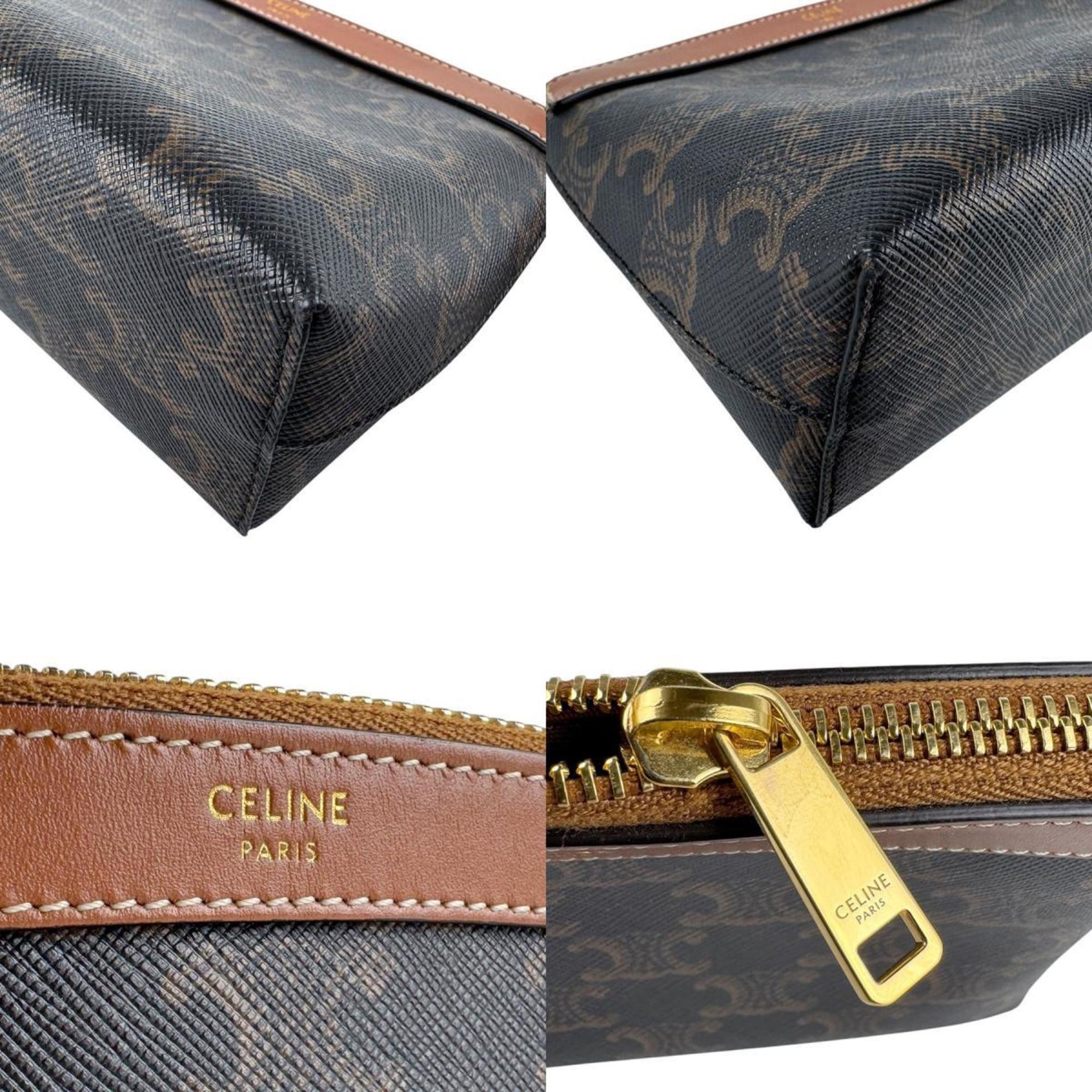CELINE Pouch Bag Coated Canvas Leather Brown Women\'s z5932