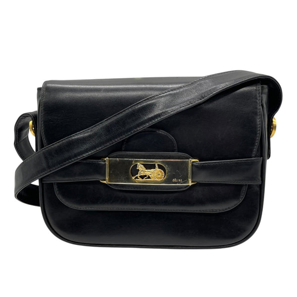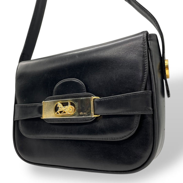 CELINE Shoulder bag, Horse Carriage, Leather, Black, Gold hardware, Women's