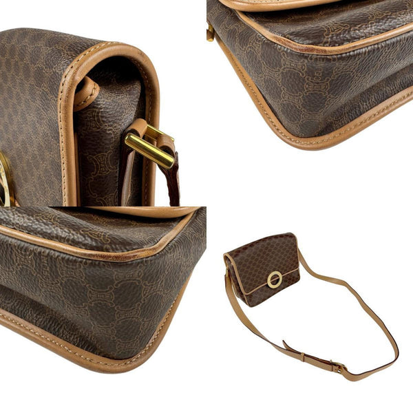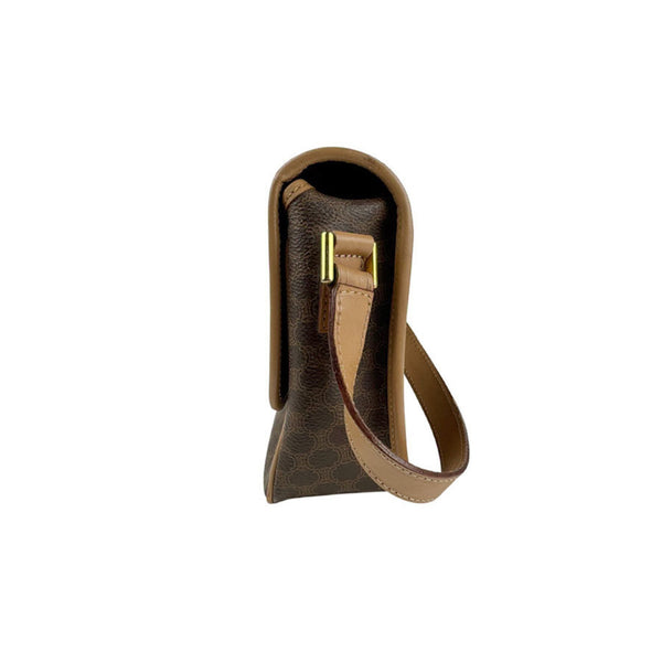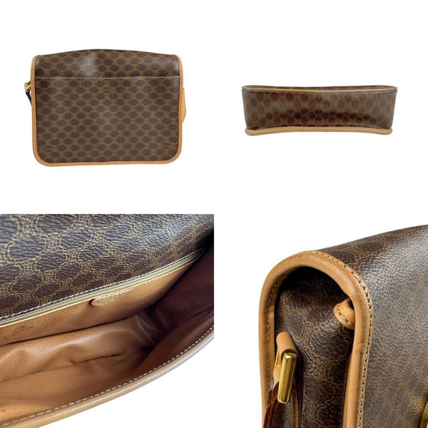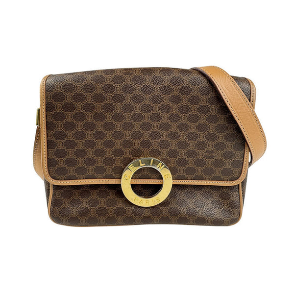 Celine Shoulder Bag, Macadam Leather, Brown and Gold, Women's, Z6030