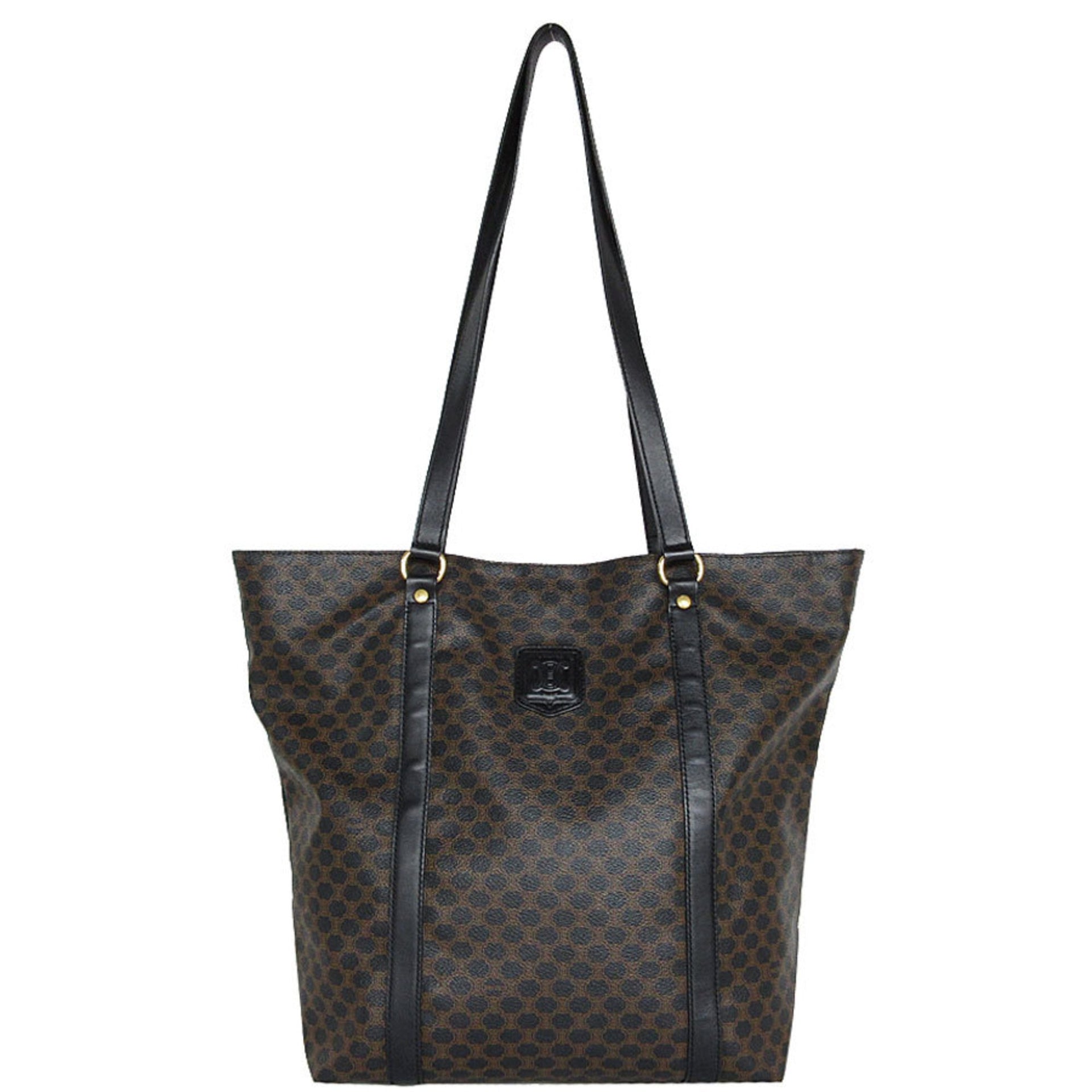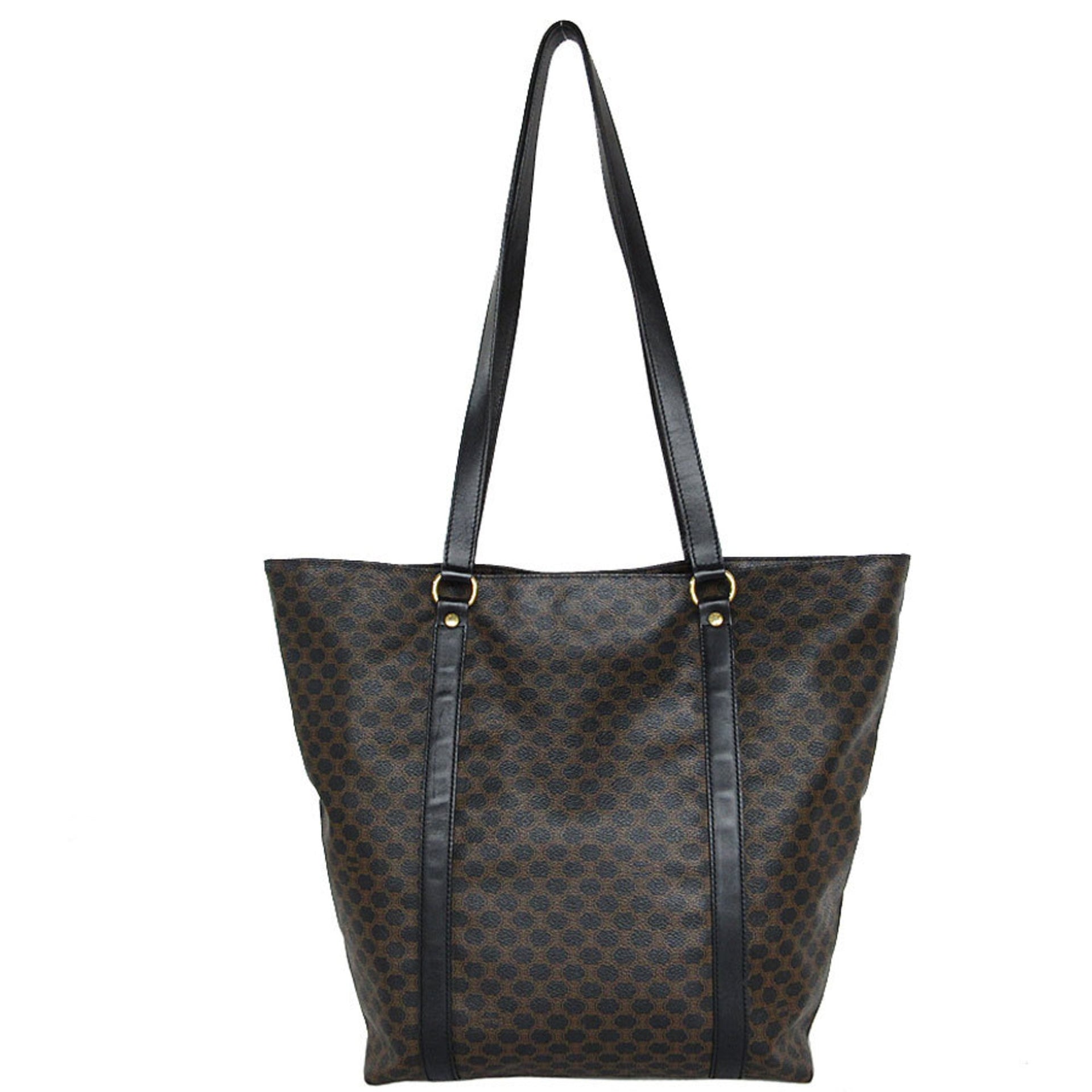 CELINE shoulder bag tote macadam leather brown black gold women\'s s0626k