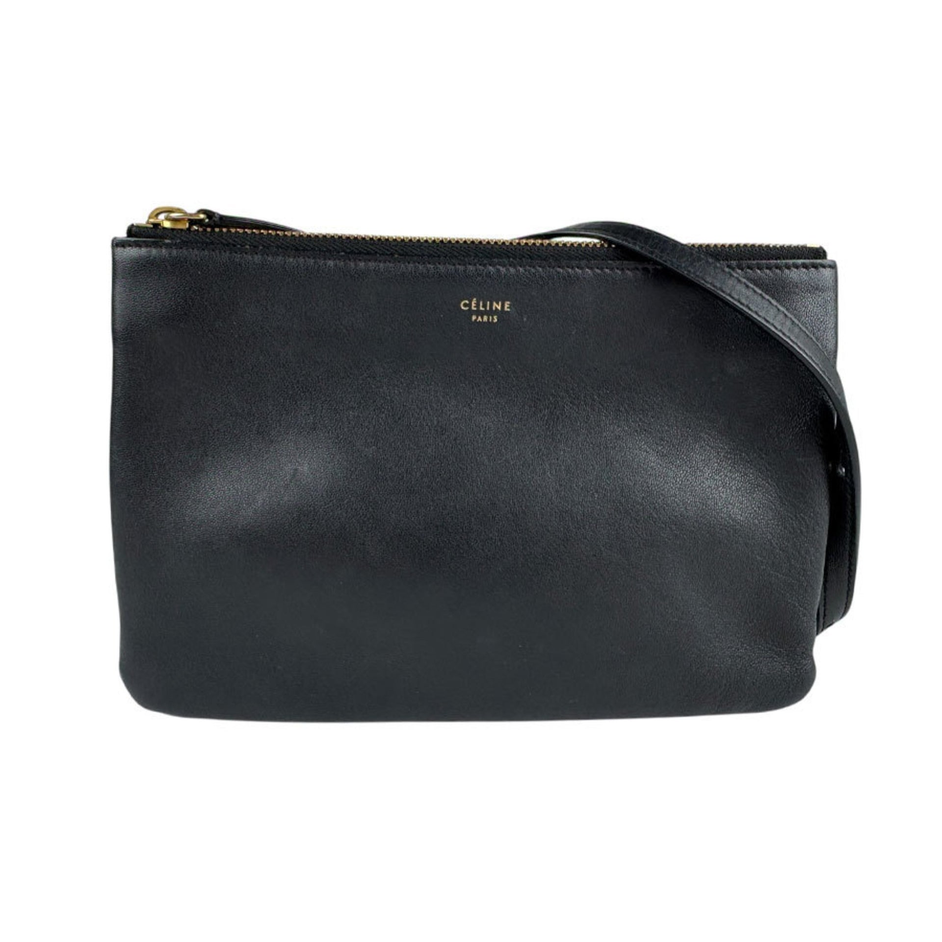 CELINE Shoulder Bag Trio Leather Black Women\'s z5763