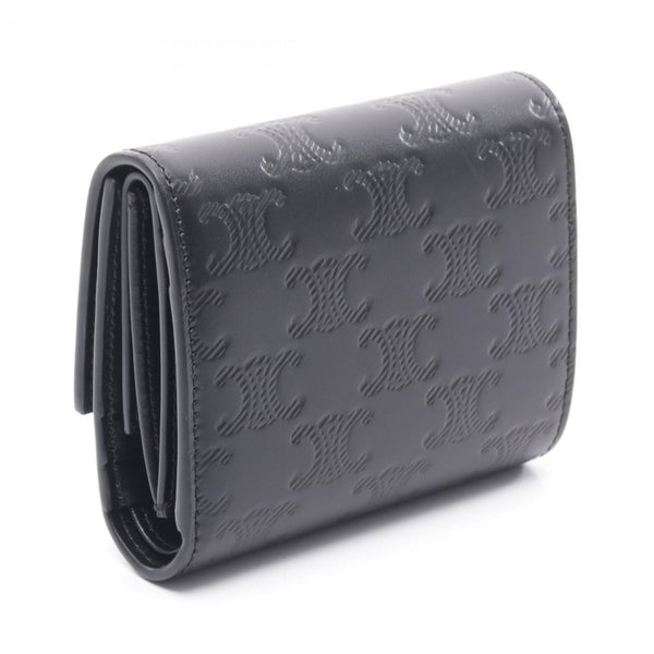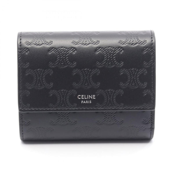 Celine Small Trifold Wallet, Leather, Women's, Black