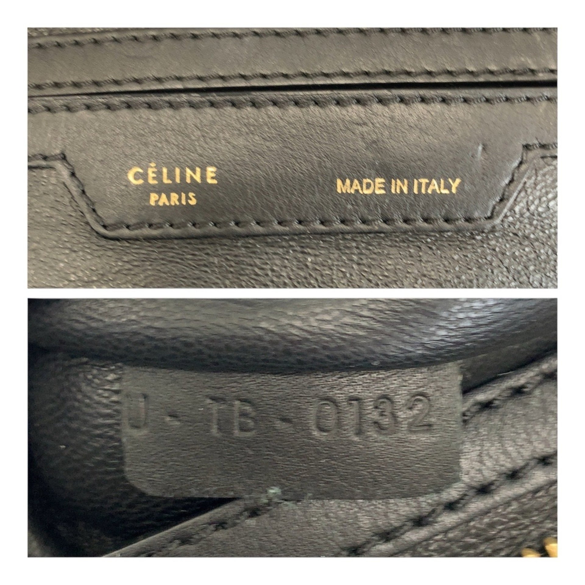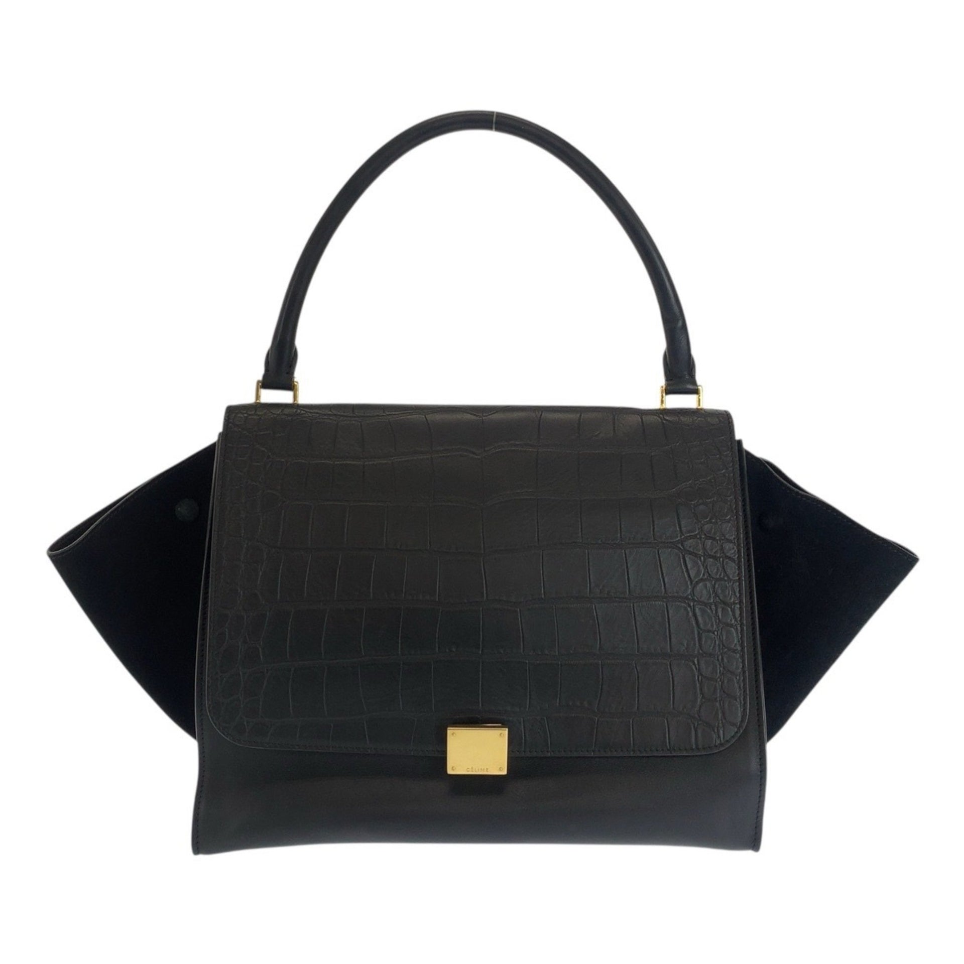 CELINE Trapeze Embossed Black Leather Shoulder Bag with Gold Hardware for Women