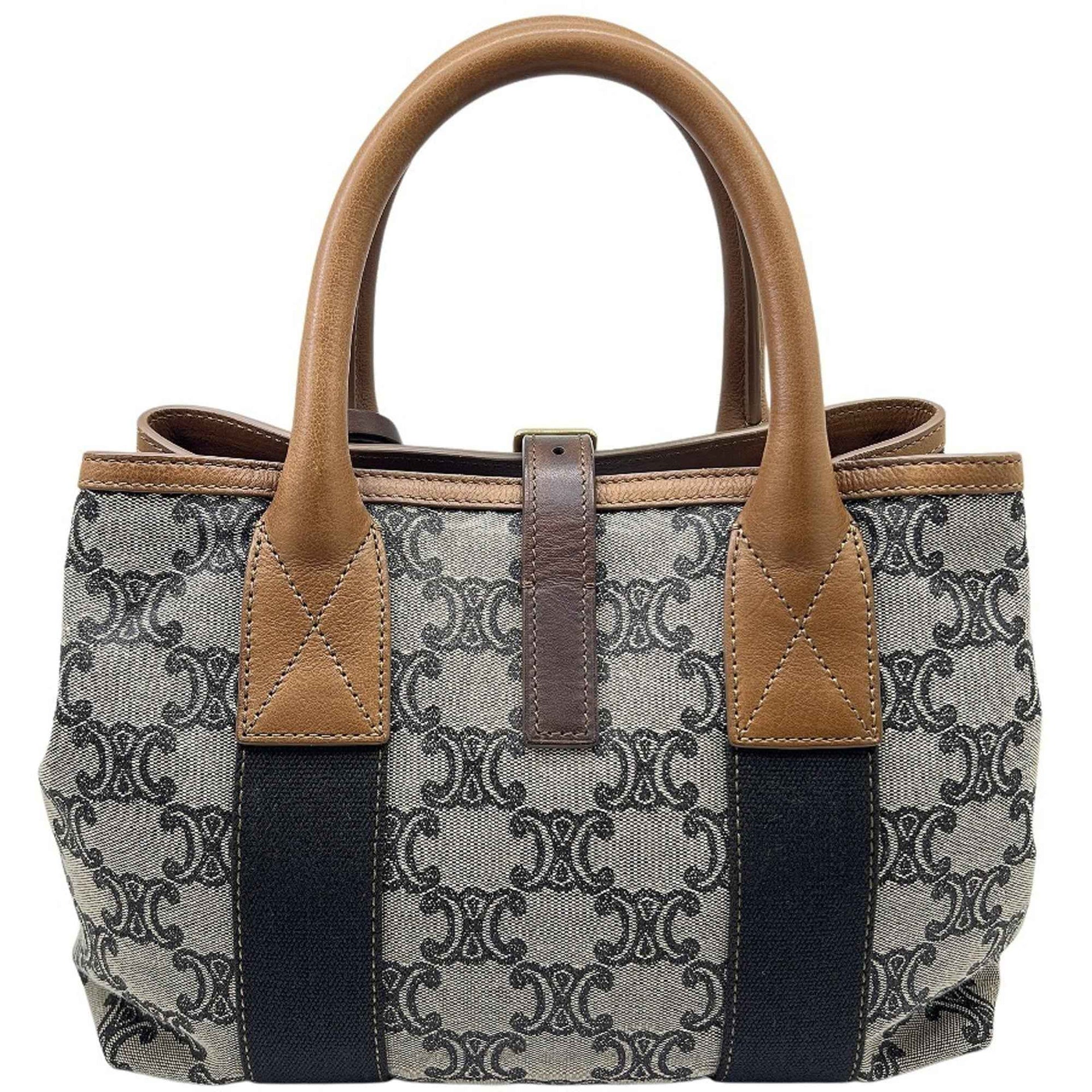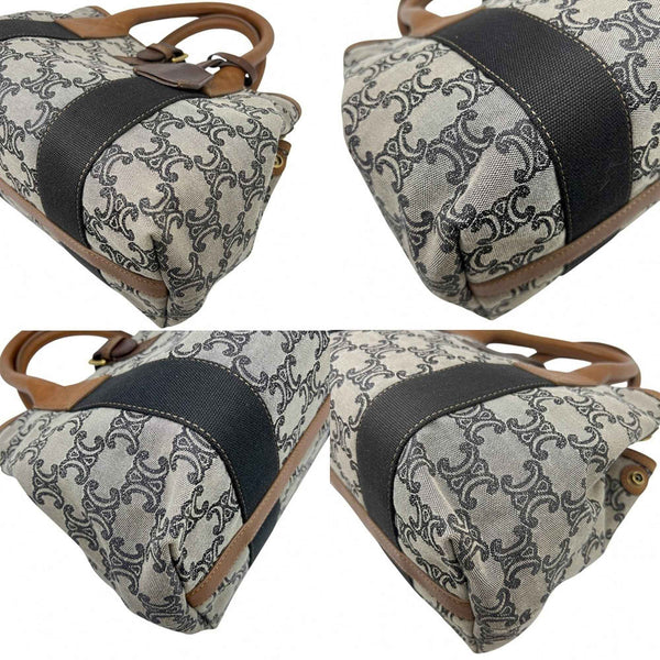 CELINE Trim Off Paris Madame Handbag Tote Bag Canvas Leather Women\'s Men\'s
