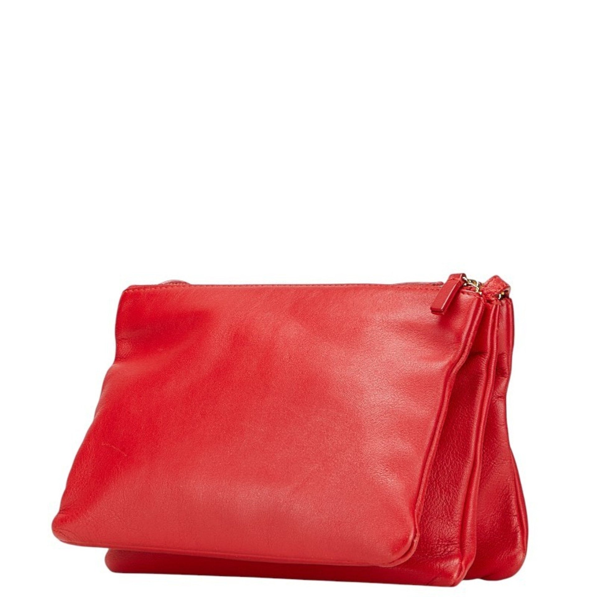Celine Trio Crossbody Shoulder Bag in Red Leather for Women