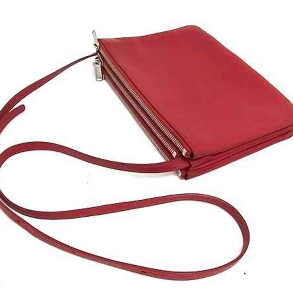CELINE Trio Large Shoulder Bag - Red Leather Women\'s