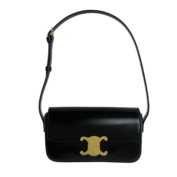 CELINE Triomphe Claude logo hardware leather shoulder bag, black, 01463