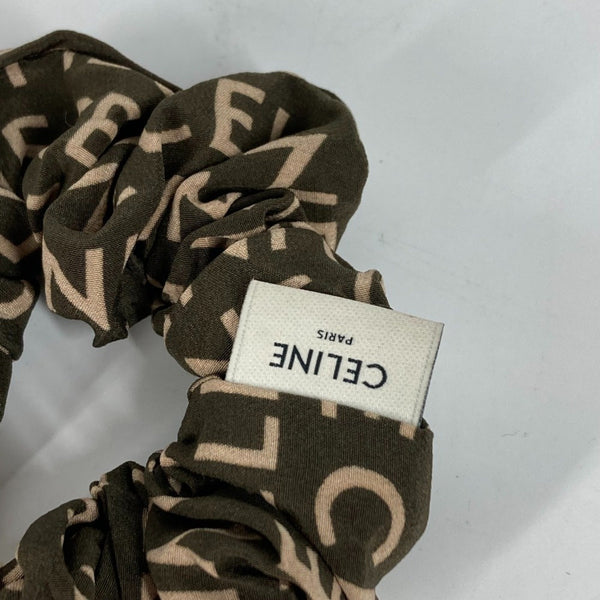 CELINE Triomphe Logo Hair Accessory, Silk Scrunchie Tie, Women\'s, Khaki