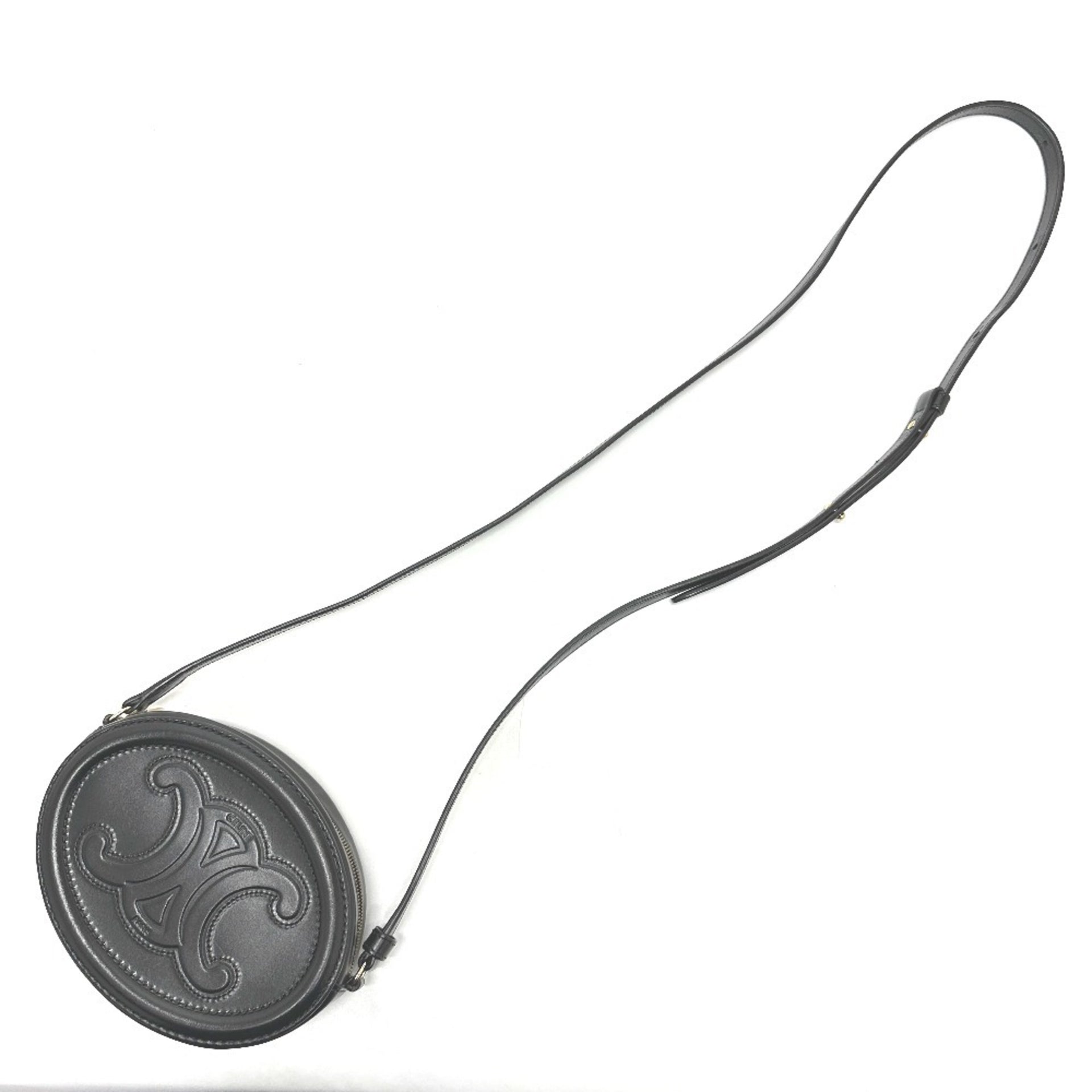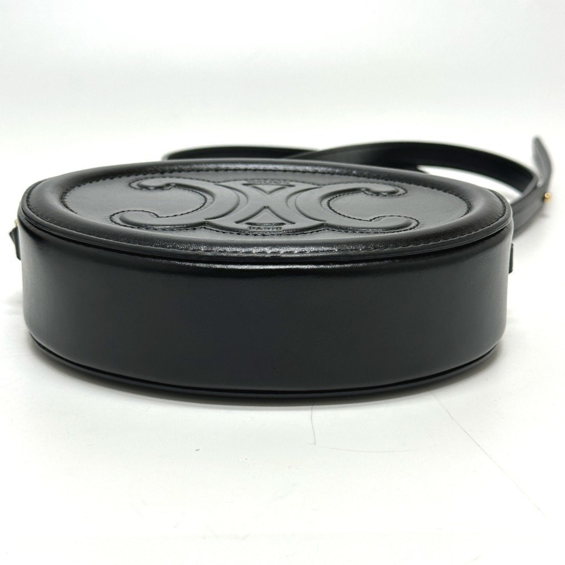 CELINE Triomphe Oval Purse Cuir Crossbody Shoulder Bag in Black Leather for Women