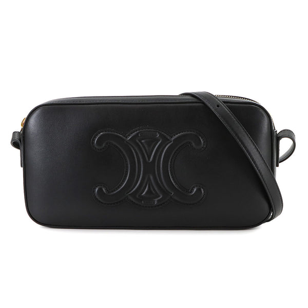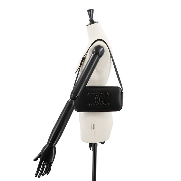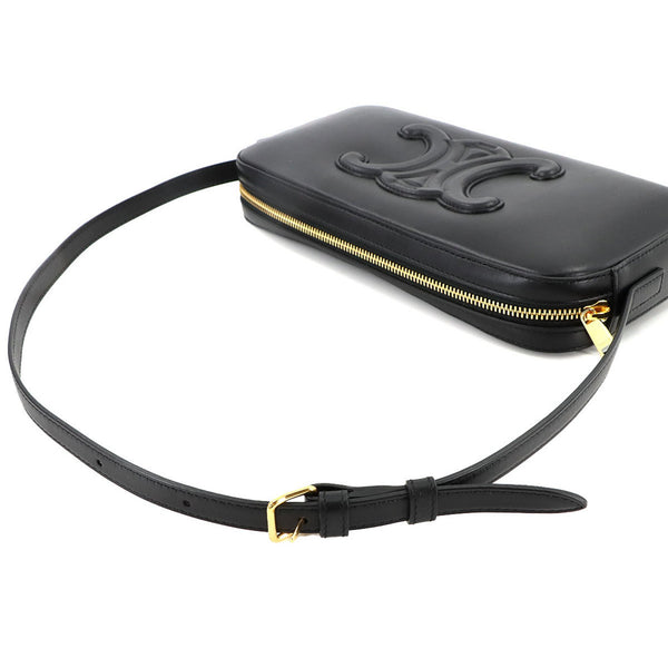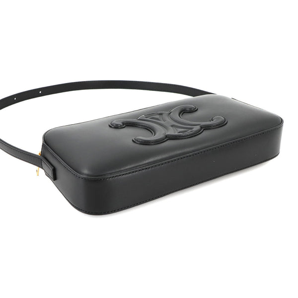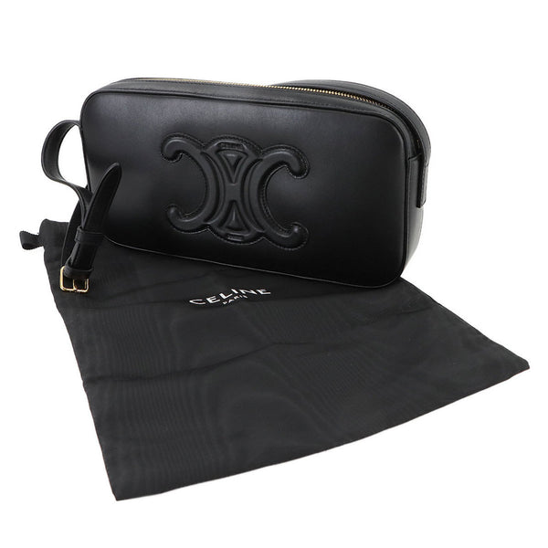 Celine Triomphe Shoulder Bag in Black Leather with Gold Hardware (199183)