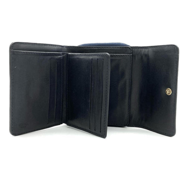 CELINE Triomphe Tri-fold Wallet Canvas Leather Navy Women's