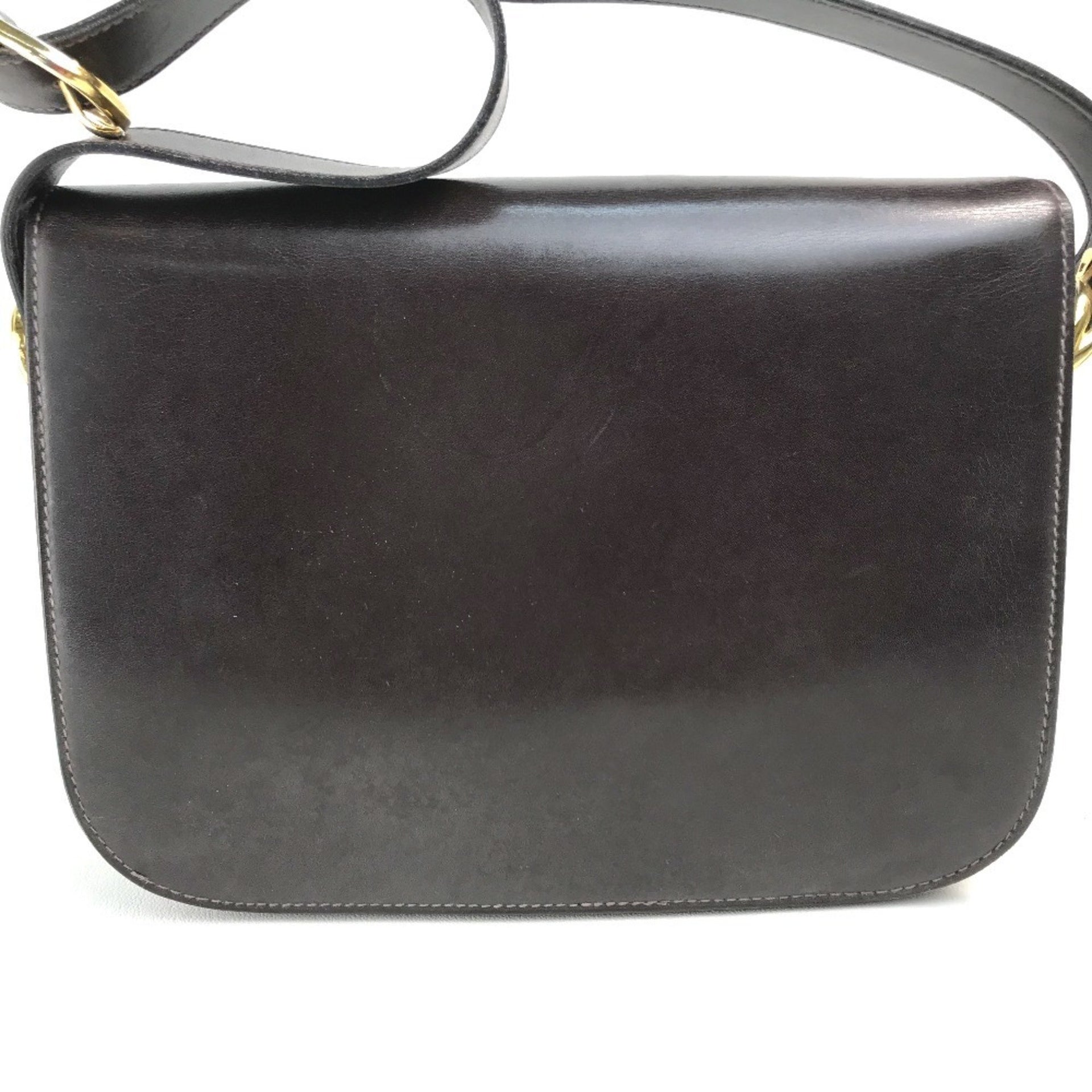 CELINE Vintage Carriage Hardware Shoulder Bag, Leather, Women\'s, Dark Brown with Gold