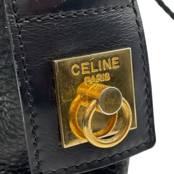 CELINE Vintage grained leather genuine black shoulder bag can be worn on the gold hardware women's zipper closure