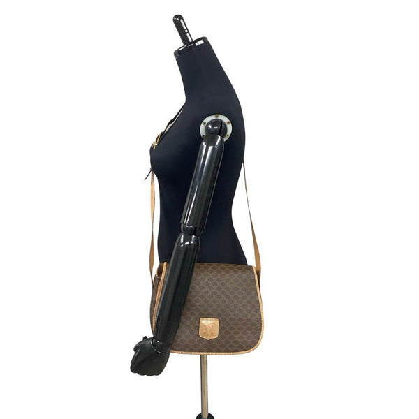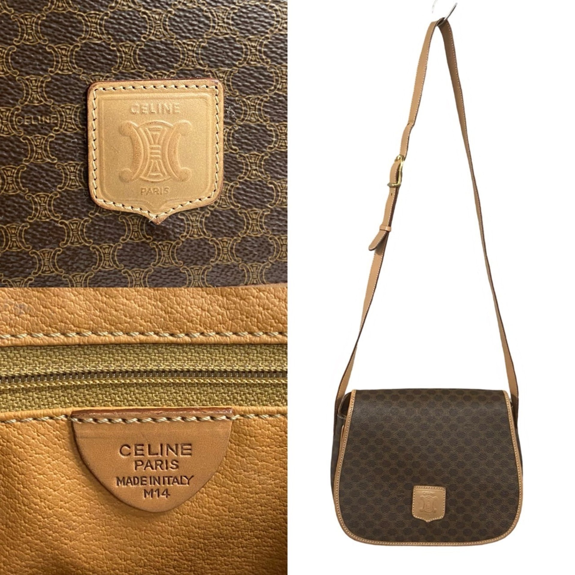 CELINE Vintage Macadam Blason Triomphe Leather Shoulder Bag/Pochette in Brown (Product Code: 62149)
