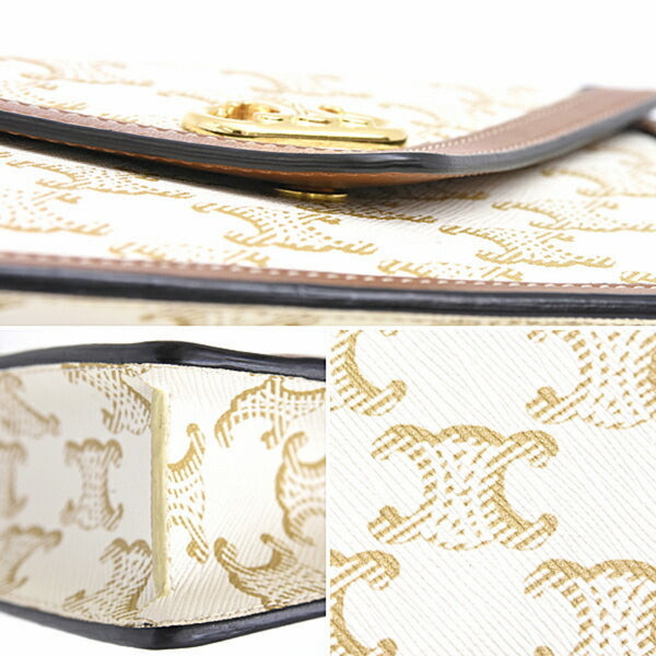 Celine Women\'s Triomphe Chain Shoulder Wallet Purse Pochette Off-White Brown CELINE