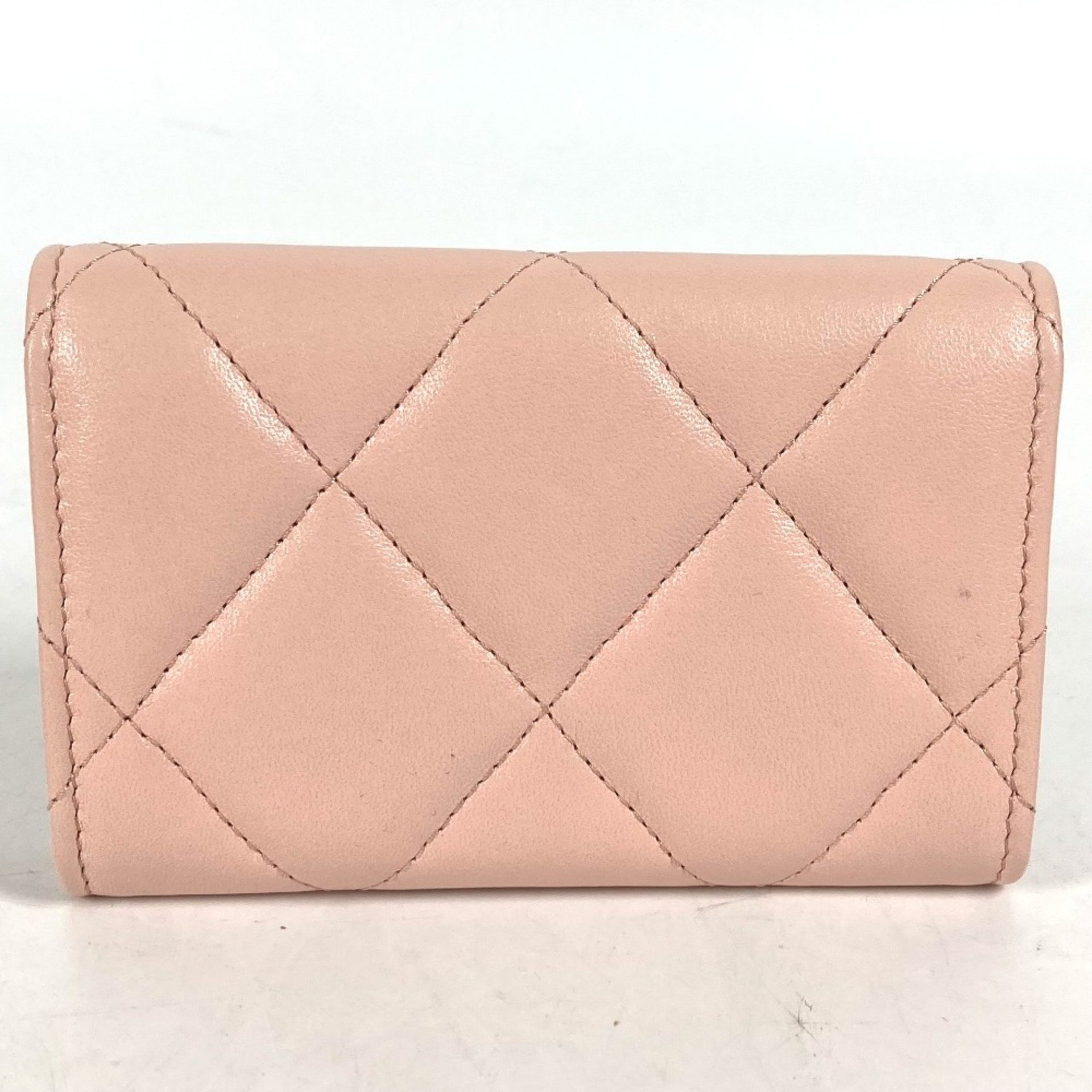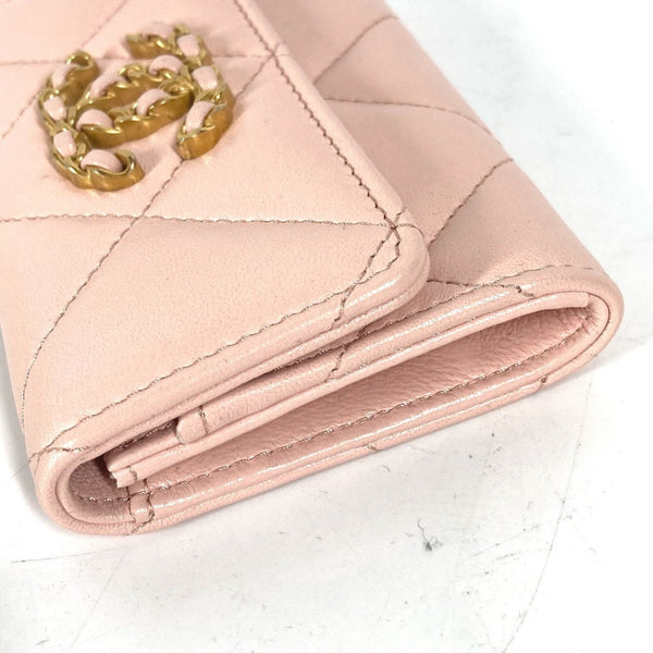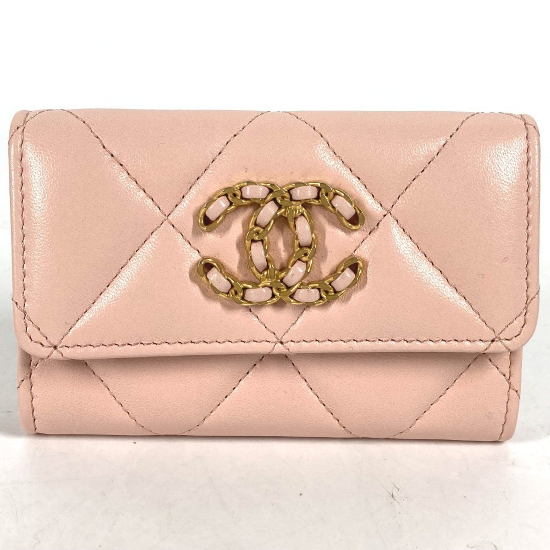 CHANEL 19 Line Chain CC Card Case Matelasse Coco Mark Wallet Coin Lambskin Women\'s Pink