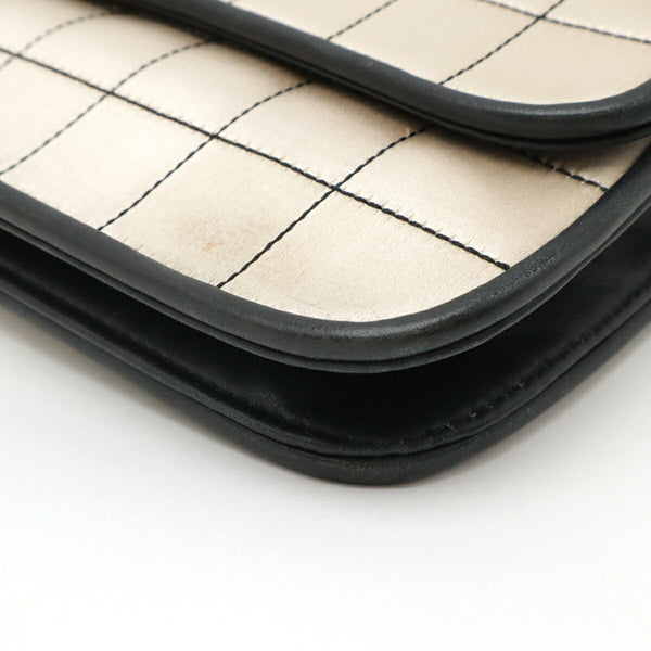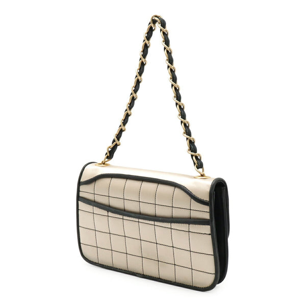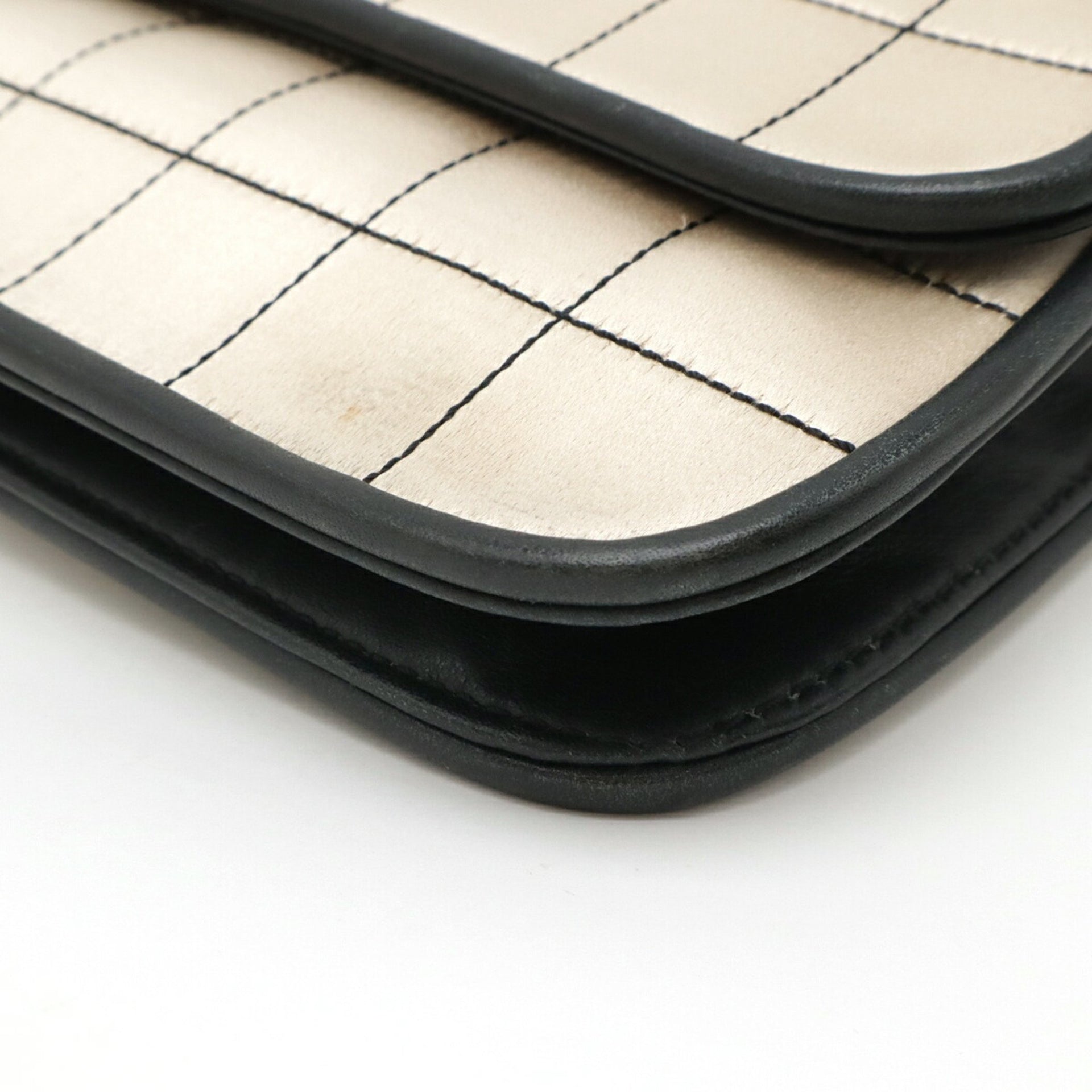 CHANEL 2.55 Matelasse Chain Bag Shoulder Satin Leather Champagne Gold Black