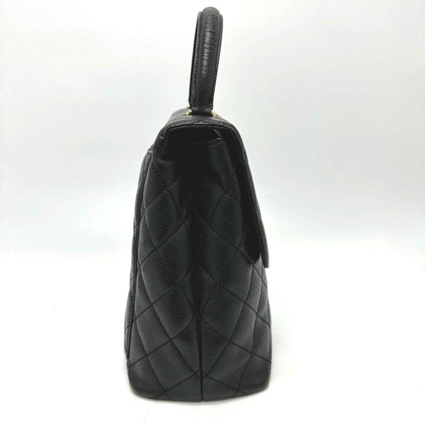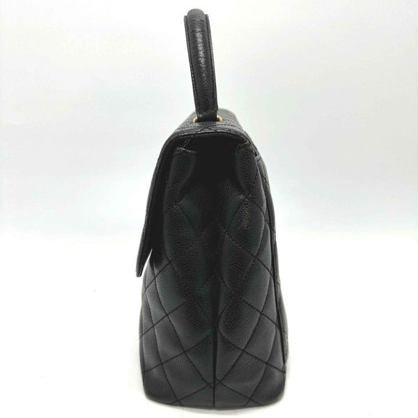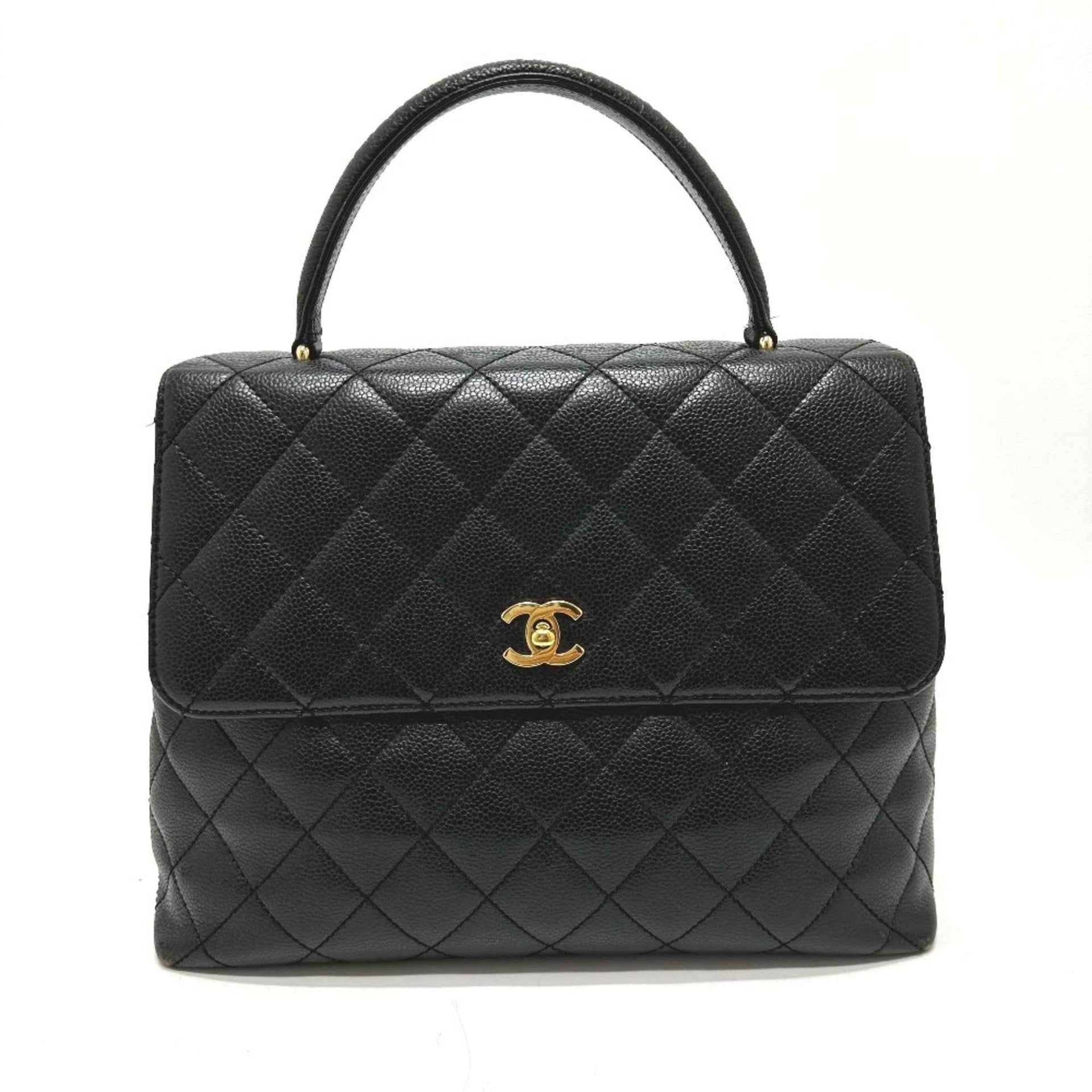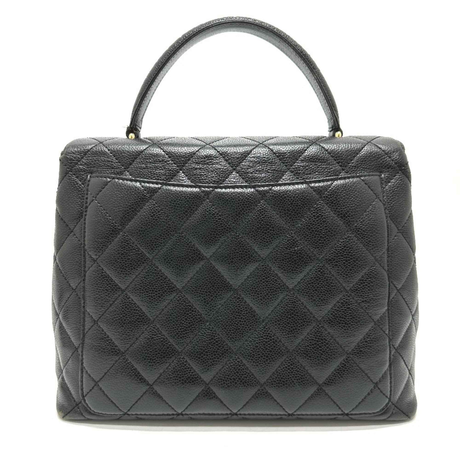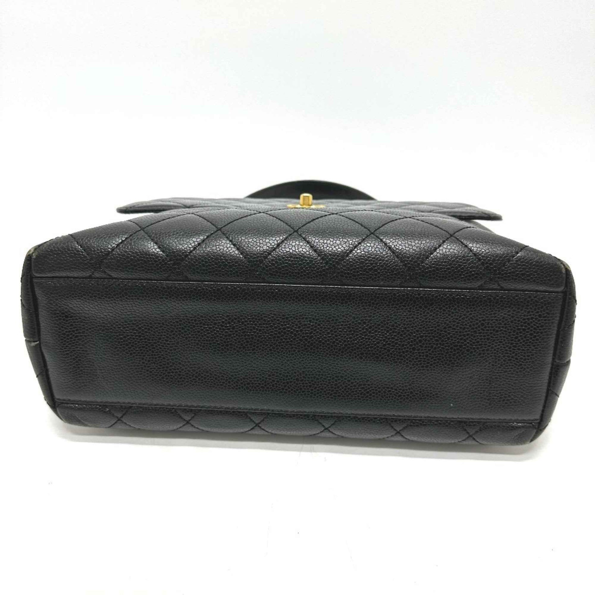 CHANEL A12397 Coco Mark Matelasse Tote Bag with Top Handles, Caviar Leather, Women\'s, Black