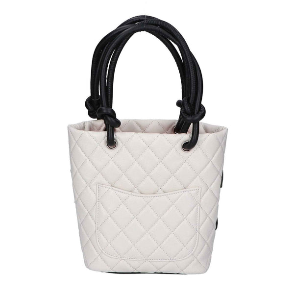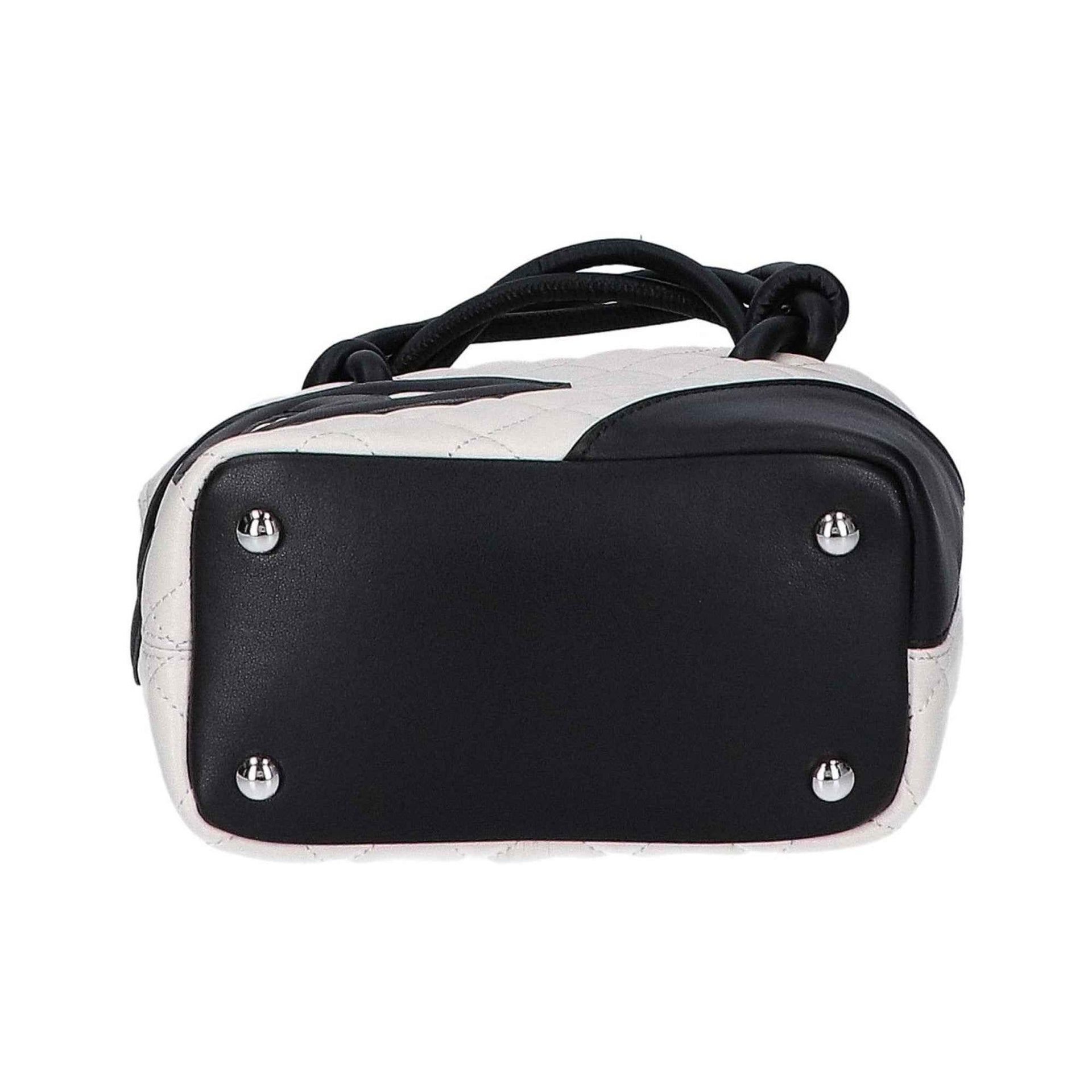 CHANEL A25166 Cambon Line Lambskin Small Tote Bag, Black and White, Women\'s
