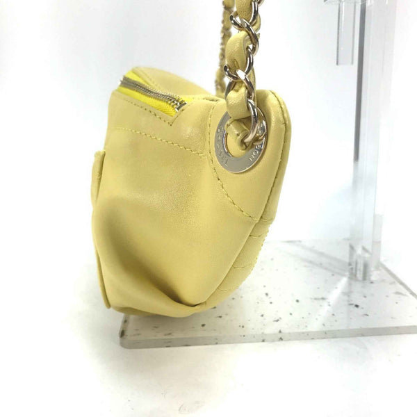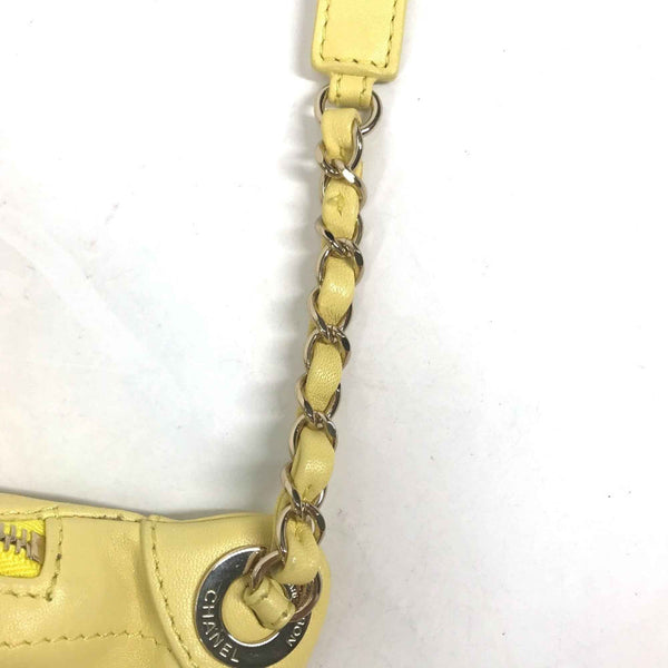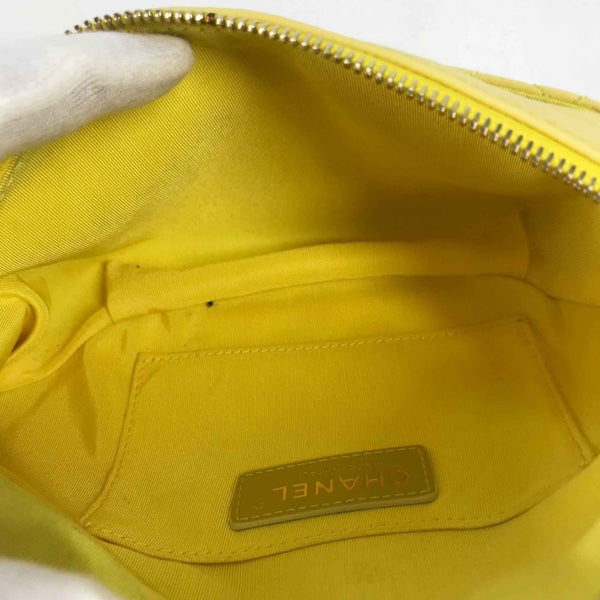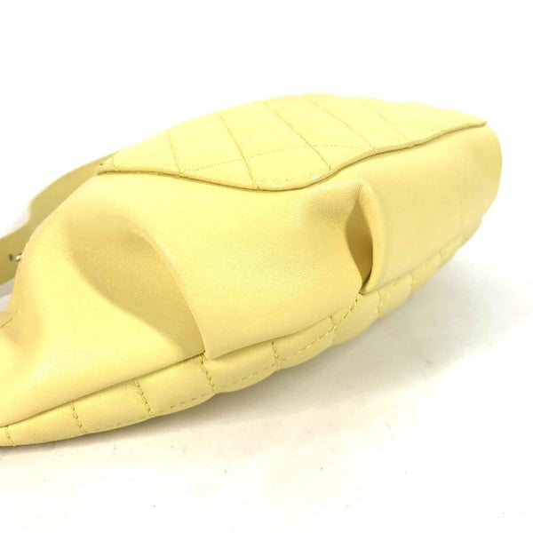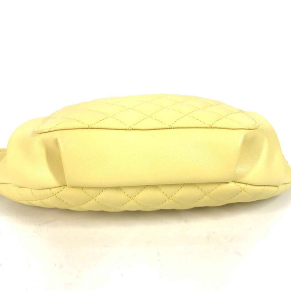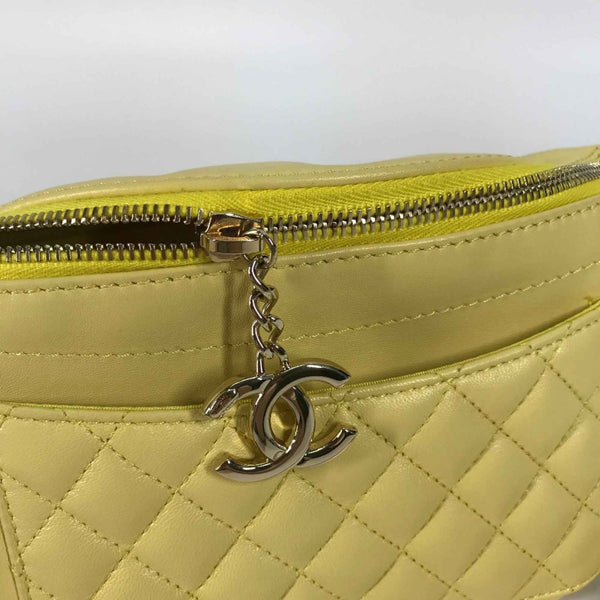 CHANEL A57832 Chain Belt Bag/Waist Pouch with CC Coco Mark, Crossbody Quilted Matelasse Design, Lambskin, Yellow, Like New