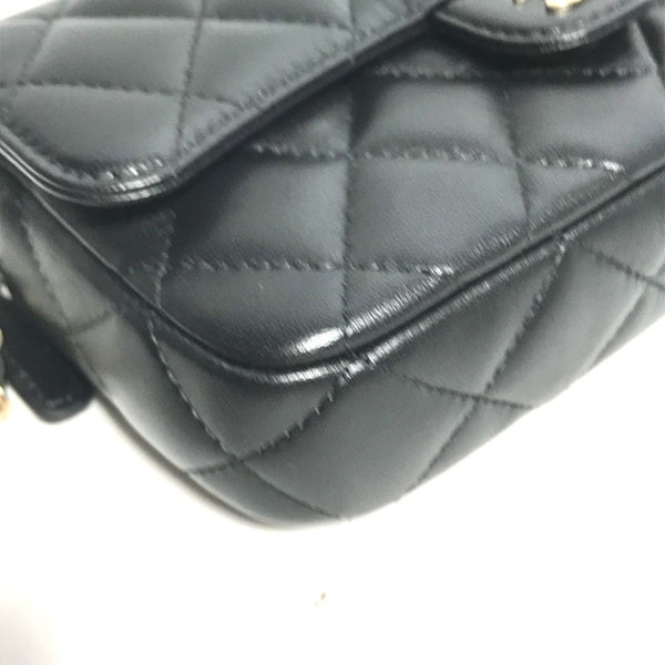 CHANEL AP2096 Coco Mark Phone Case Wallet, CC Matelasse Chain Long Wallet/Shoulder Bag, Women\'s, Black Lambskin, Like New