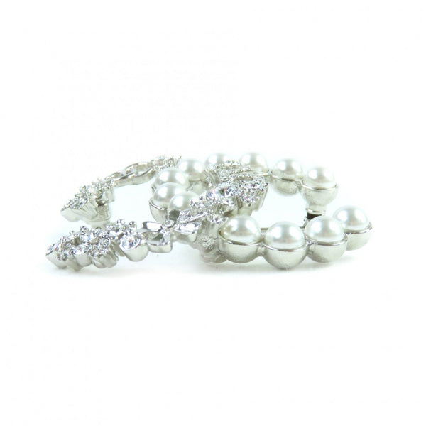 CHANEL B23P No.5 Coco Mark Rhinestone F Pearl Brooch Silver White Women\'s Box and Dust Bag Included