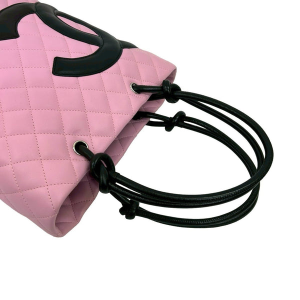 CHANEL Cambon Coco Mark Lambskin Mini Tote Bag in Pink and Black (3883a)