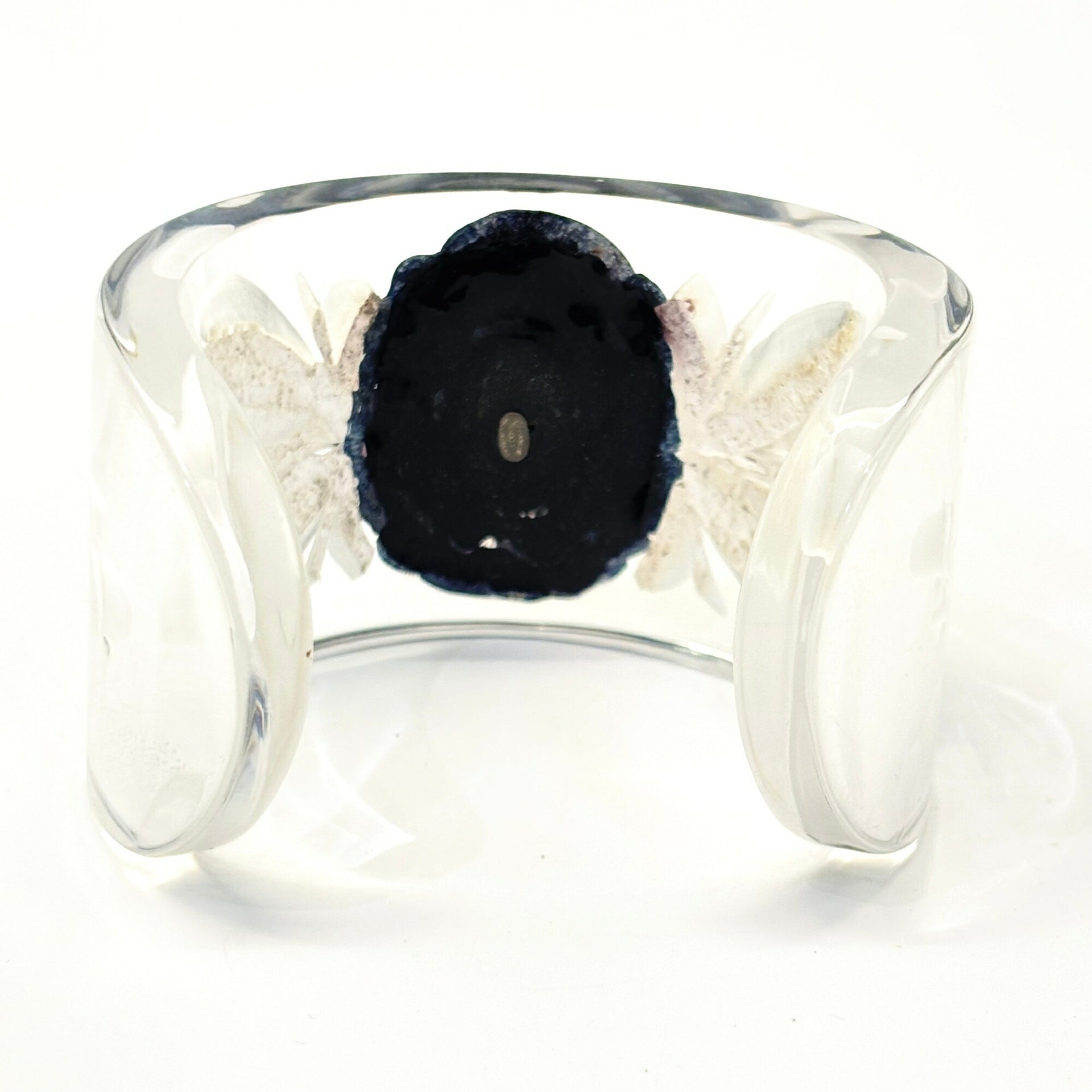 Chanel Camellia Bangle Bracelet Plastic Clear Color Black Floral Flower Motif Monochrome CHANEL
