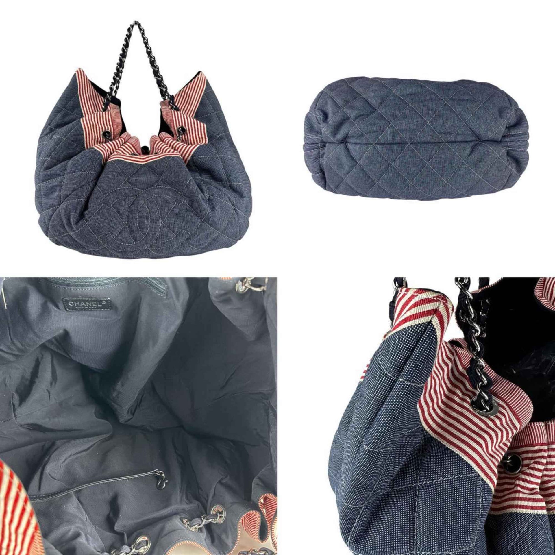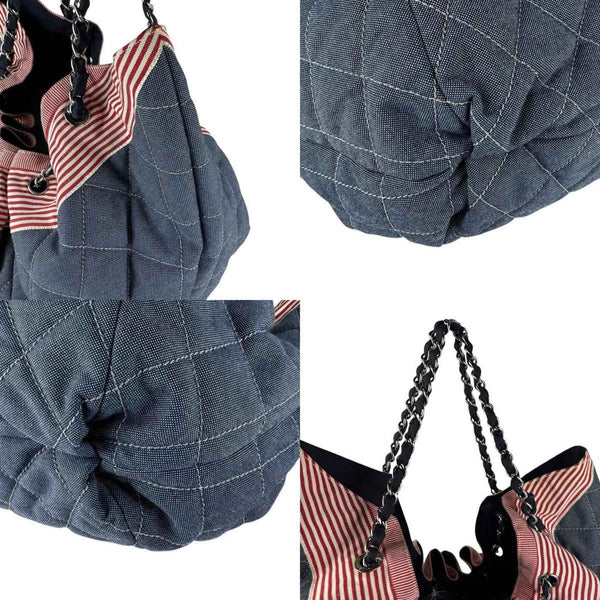 CHANEL Canvas Handbag, Blue x Red White, Women\'s, Z7275