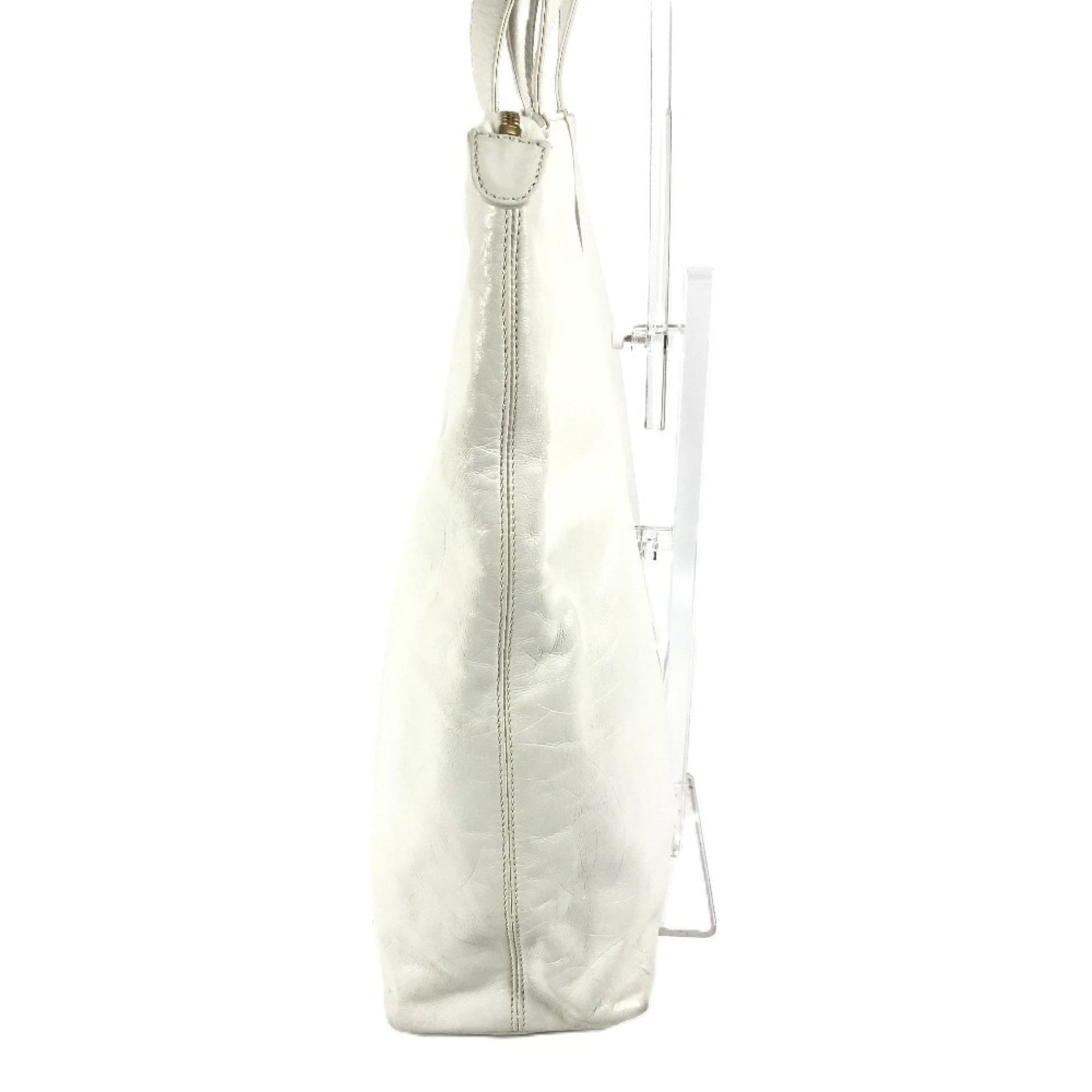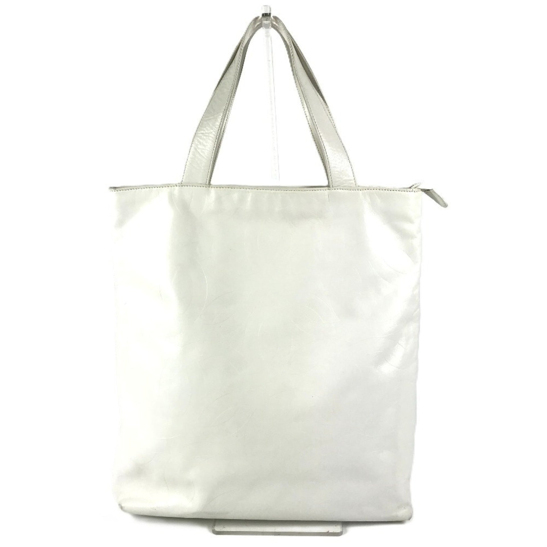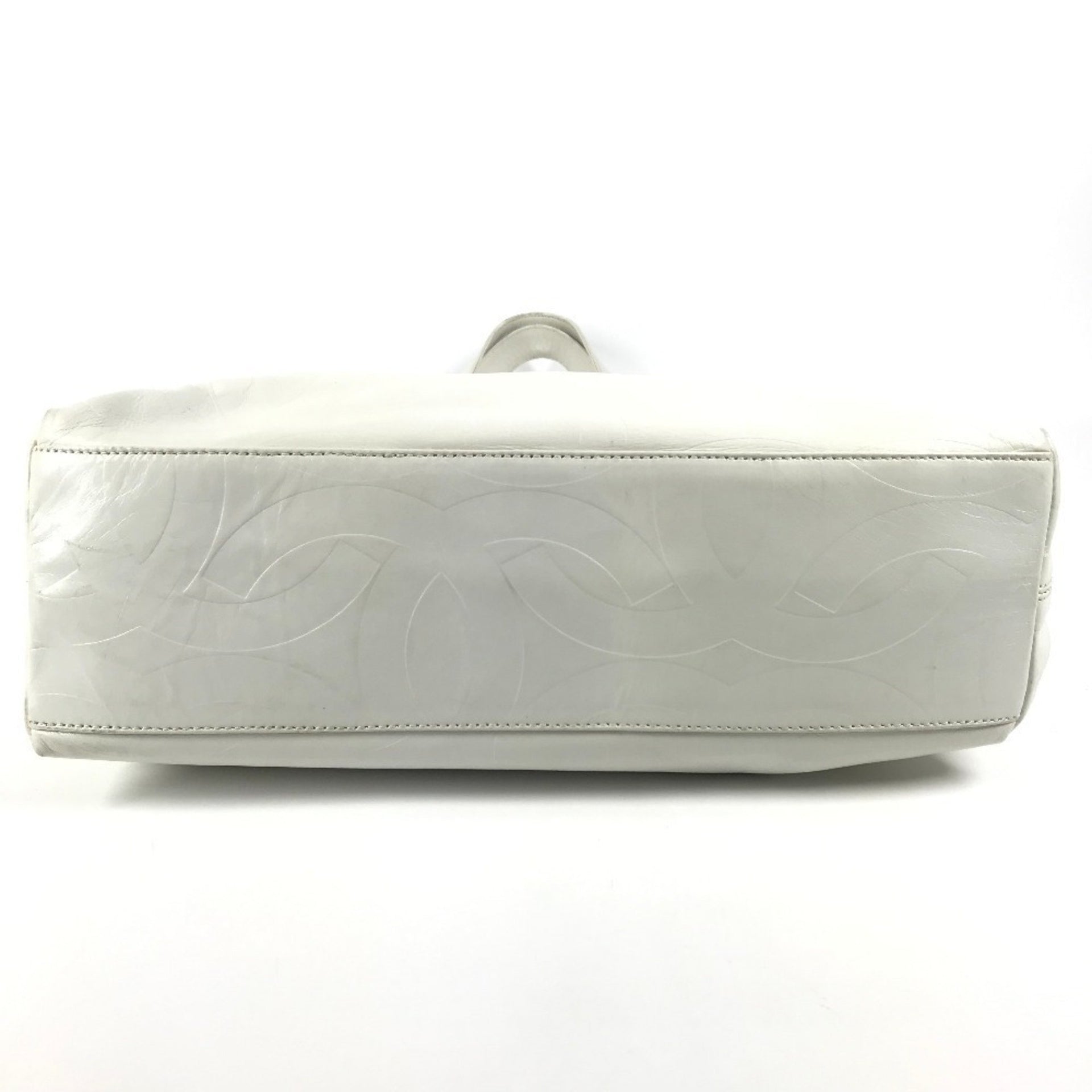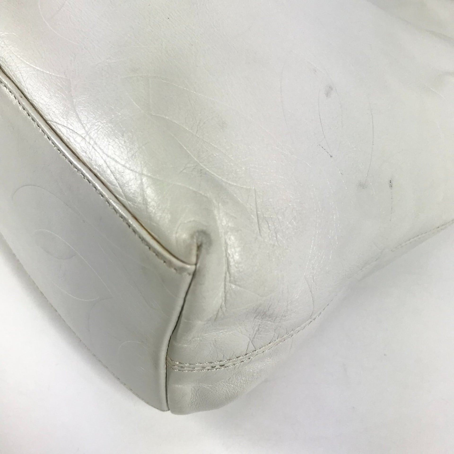 CHANEL CC Coco Mark All Logo Tote Bag Shoulder Vertical Leather Women\'s White
