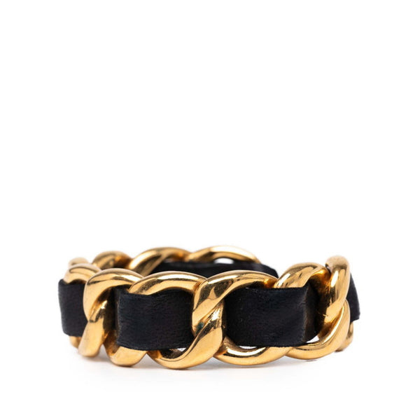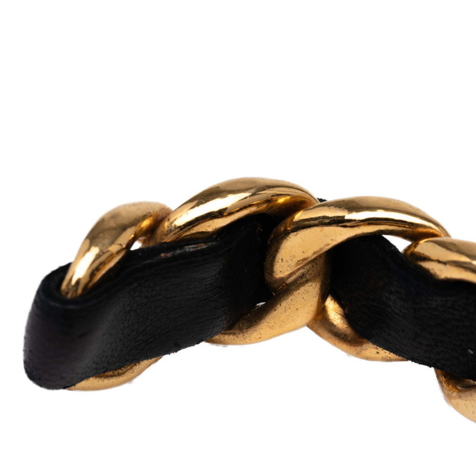 Chanel Chain Motif Bangle in Gold and Black Plated Leather for Women
