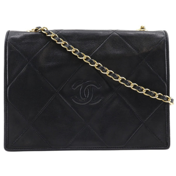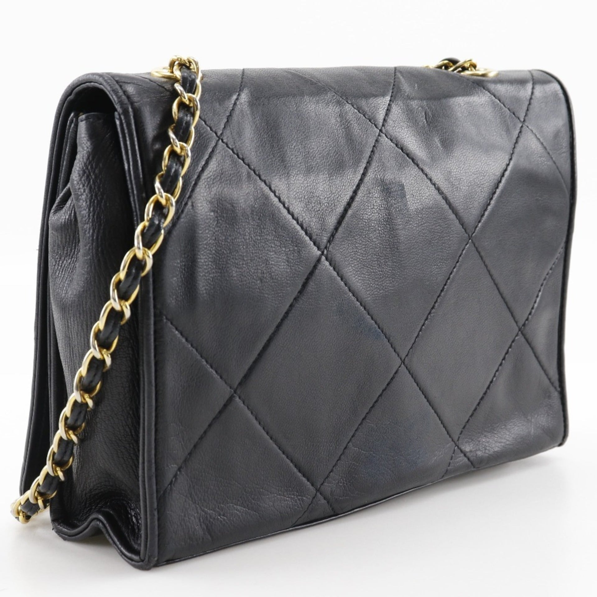 CHANEL Chain Shoulder Bag Diamond Stitched Matelasse Lambskin Black Snap Button ChainShoulder Women\'s