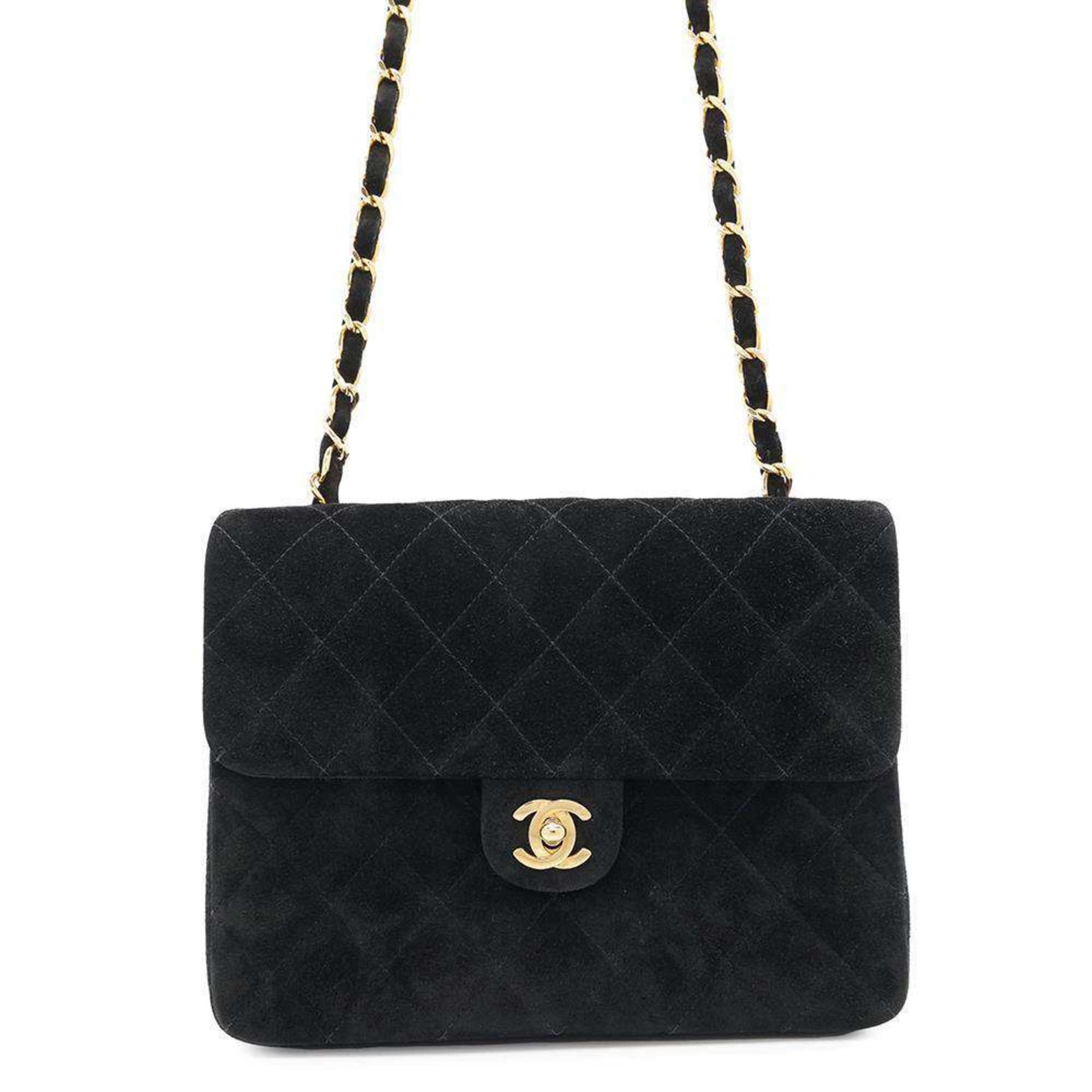 Chanel Chain Shoulder Bag Matelasse Coco Mark Single Flap Suede CHANEL Black