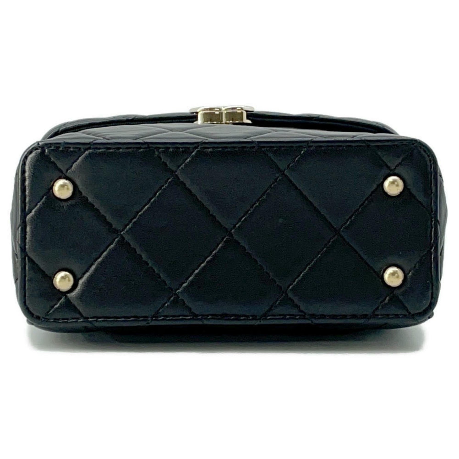 Chanel Chain Shoulder Bag Matelasse Coco Mark Vanity Lambskin CHANEL Black
