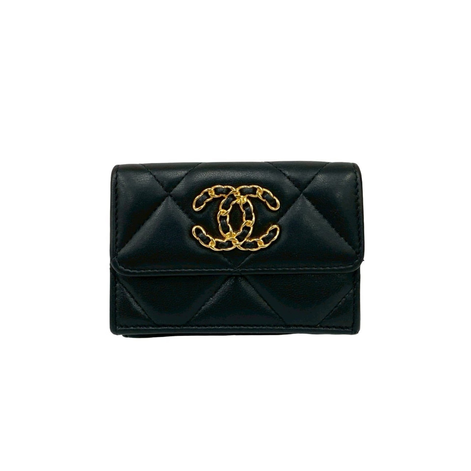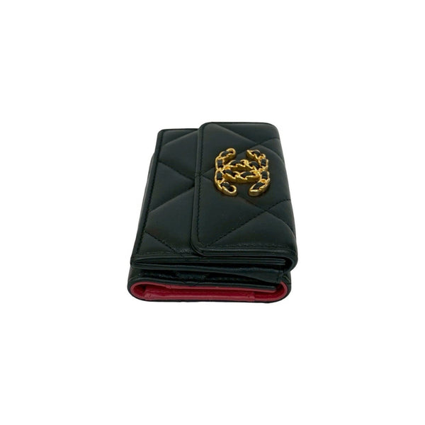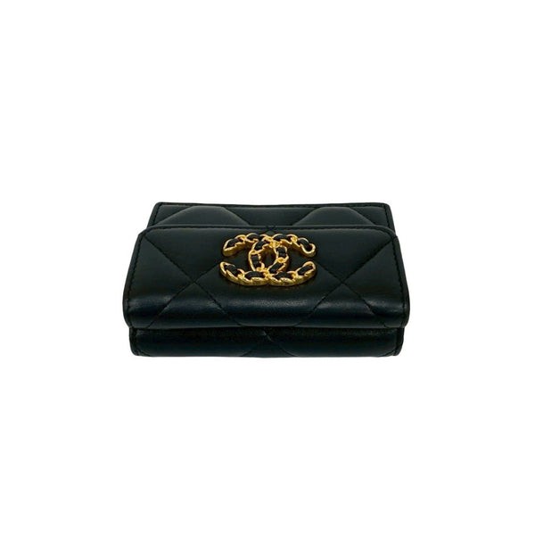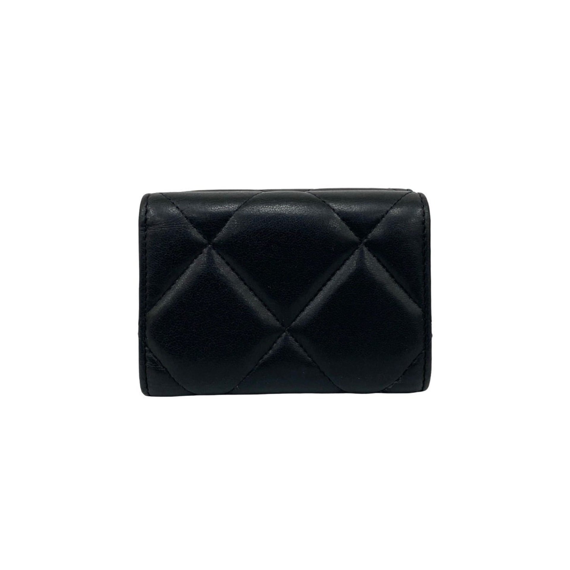 CHANEL Chanel 19 Coco Mark Lambskin Tri-fold Wallet Black 88611