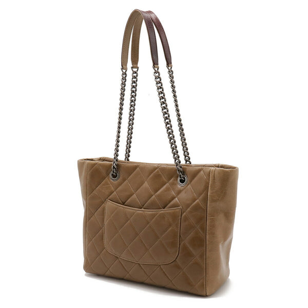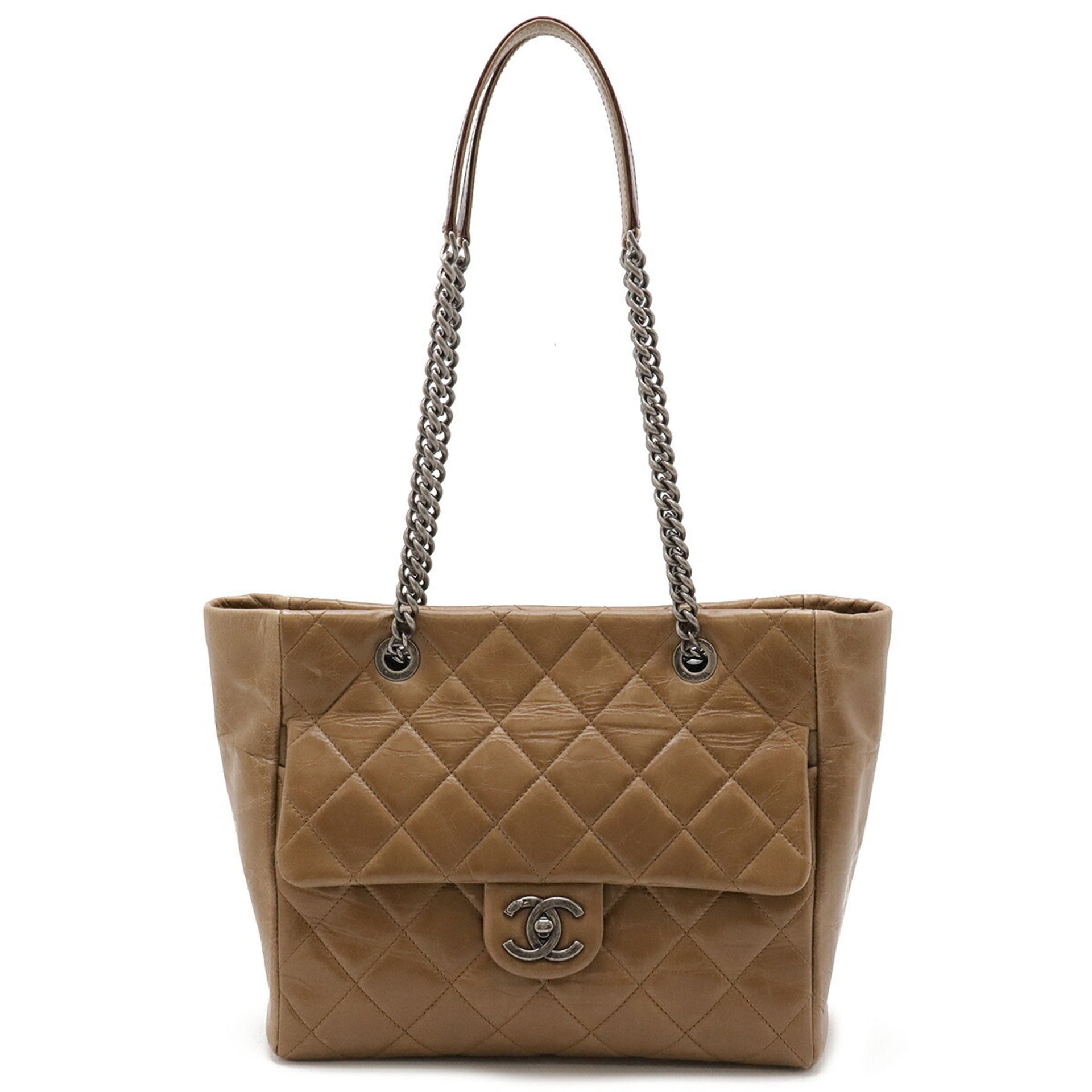CHANEL Chanel Matelasse Coco Mark Tote Bag Chain Shoulder Leather Khaki Brown