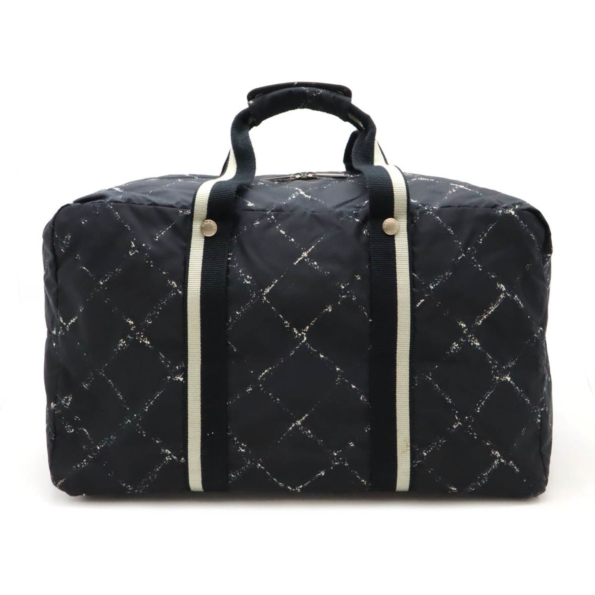 CHANEL Chanel Old Travel Line Boston Bag Nylon Black Red