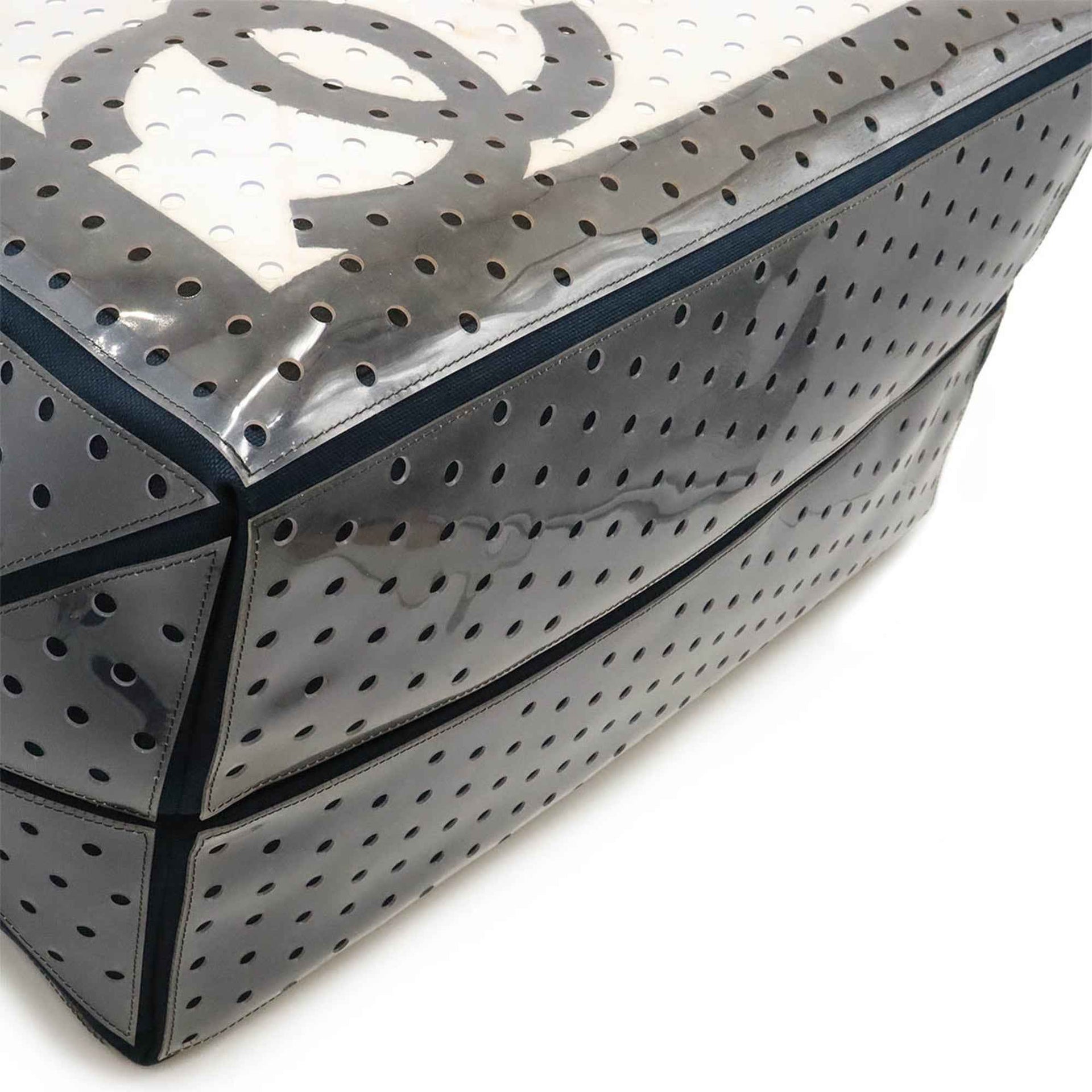 CHANEL Chanel Sport Line Coco Mark Punching Tote Bag Large Vinyl Canvas Navy Blue White