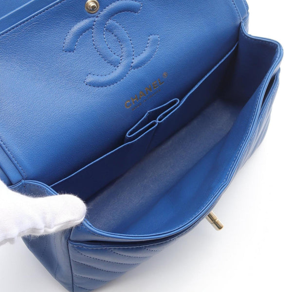 CHANEL Chevron V-stitch W-flap shoulder bag Lambskin (sheepskin) Women\'s Blue